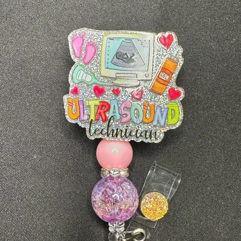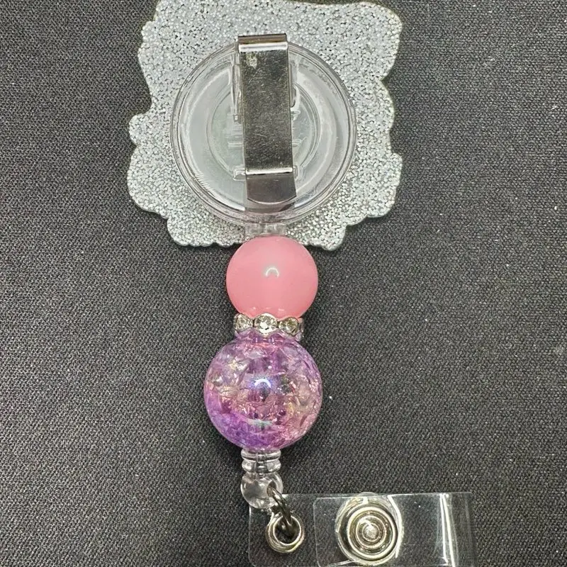This listing is a badges reel design come with alligator clip acrylic and silicone beads.