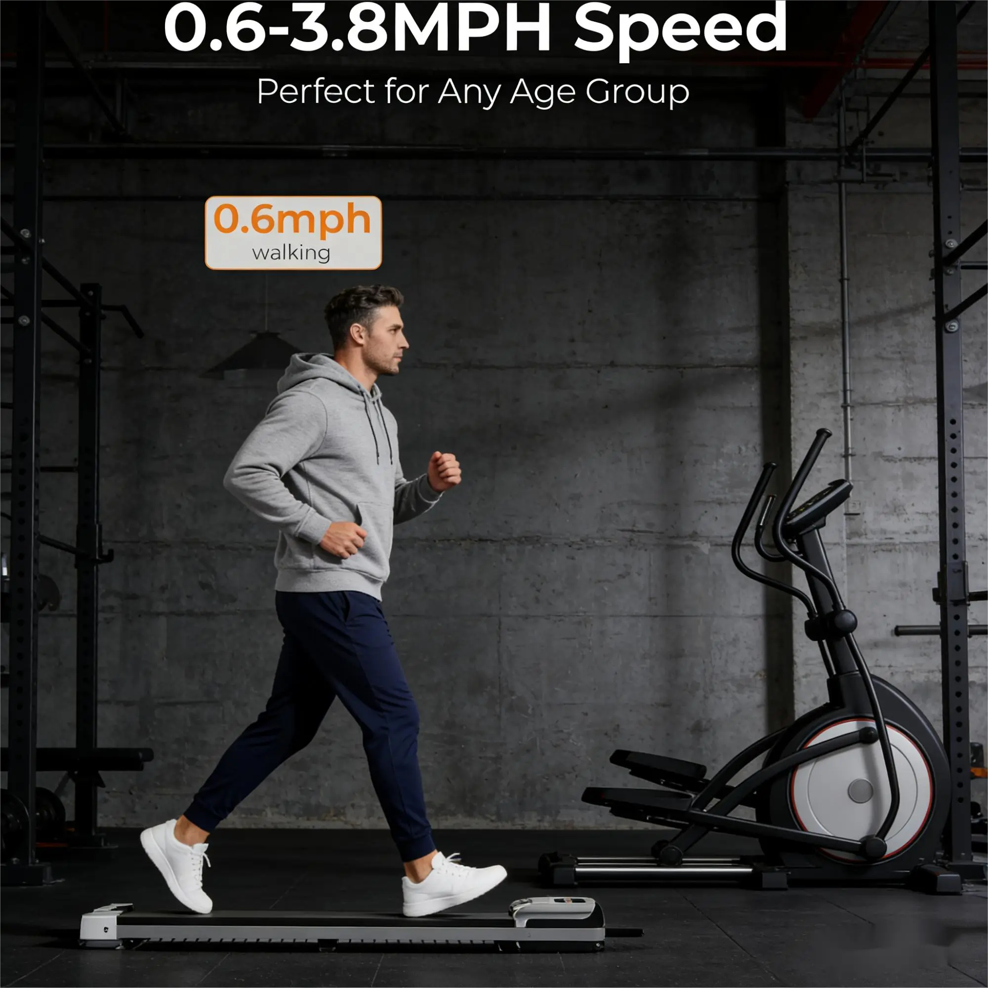 ·Walking mode (0.6-1.5 mph): Suitable for daily warm-up, slow walking to burn fat, easily integrated into fragmented time at home