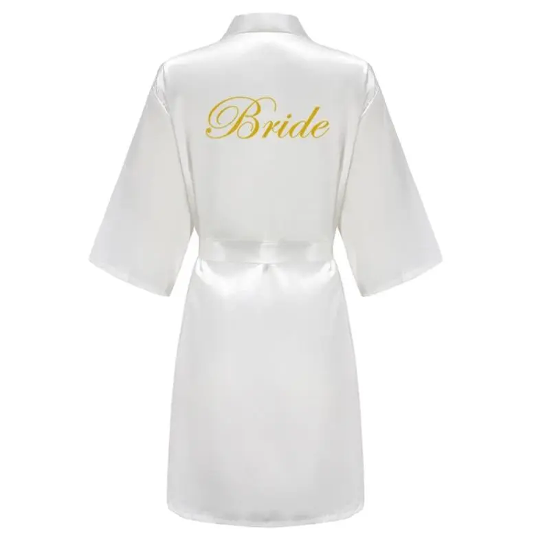 Rose Gold Satin Team Bride Bridesmaid Robe Wedding Bathrobe Gown Women Dressing Sleepwear Mother Maid of Honor Kimono