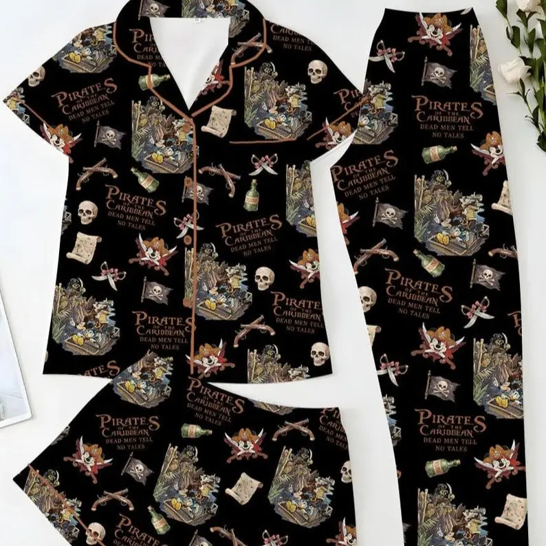 Yo Ho Yo Ho Pirate's Life For Me Unisex Satin Pajamas, Long Sleeve And Short Styles #pajamas