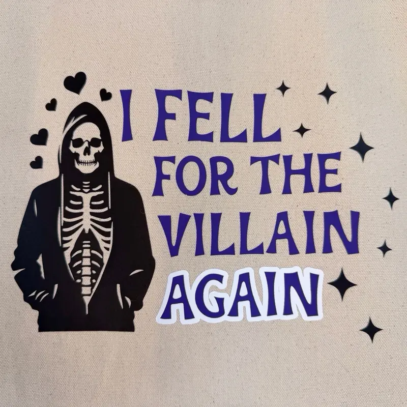 I Fell for the Villain Again canvas tote bag for dark romance readers, BookTok lovers, and anyone who always ends up obsessed with the morally gray one. Perfect for books, library trips, errands, and everyday use. Lightweight, roomy, and made to carry your current read in style. A fun gift for book lovers, reader besties, and villain girls who never learn.