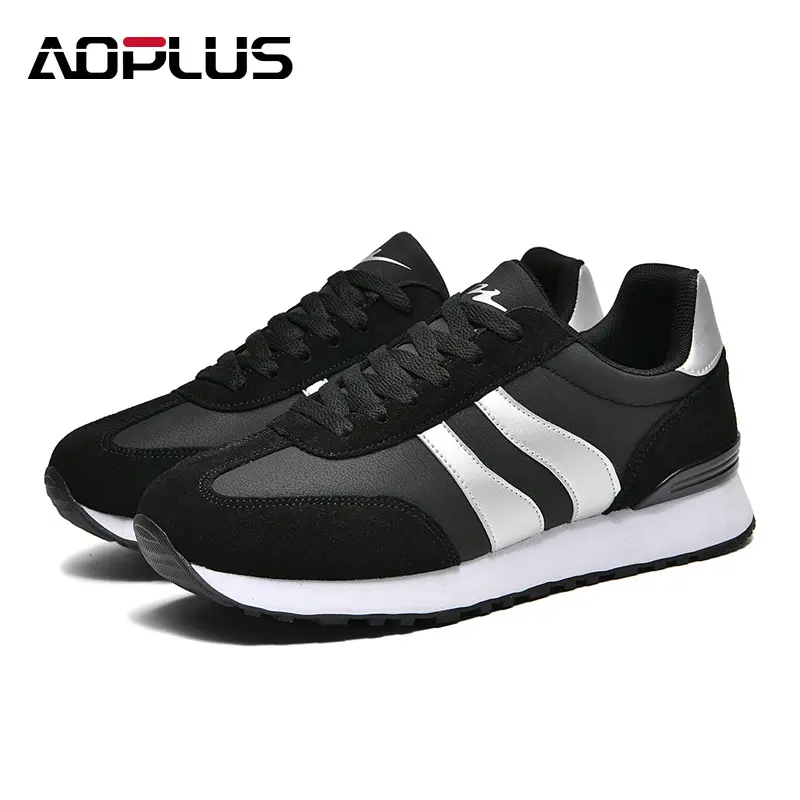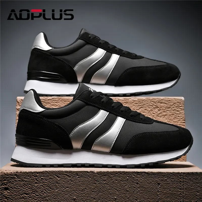 AOPLUS Men's Classic Black & White Sneakers offer a sleek, modern look with a touch of retro appeal.The contrast black and white design, along with the sporty stripes, make these shoes versatile and perfect for any casual outing.The soft, cushioned sole provides all-day comfort, whether you're running errands, hanging out with friends, or enjoying a leisurely walk.