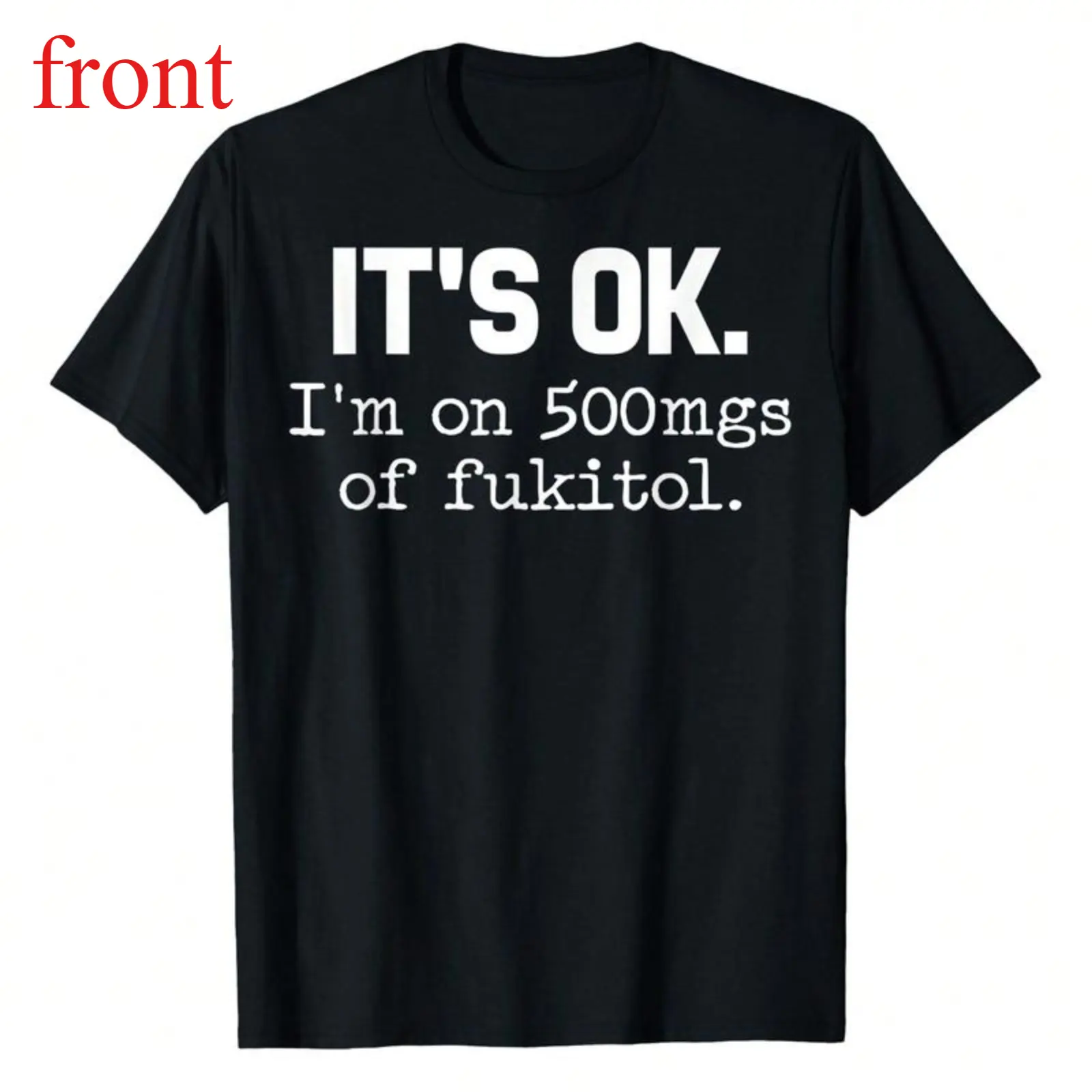 [100% Cotton] 'It'S Ok" I'M On 500Mg Of Fukitol Funny Sarcasm T-Shirt, Pure Cotton, Casual Crew Neck, Great For Day Trips, Casual Wear, Or Relaxing. Women'S Letters-Printed T-Shirt Fabric Fit Vintage Graphic Tees W Golf Gift T-Shirt For Men Gift