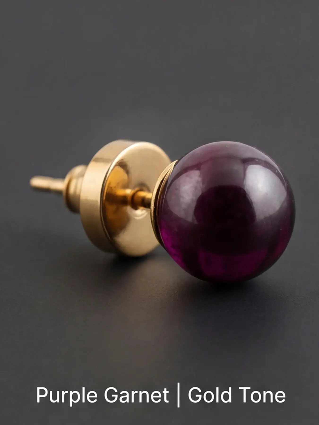 Women's Hypoallergenic Lightweight Titanium Steel Purple Garnet Stud Earrings, Dainty Gold Tone Fashion Jewellery for Everyday Wear Gift for Her