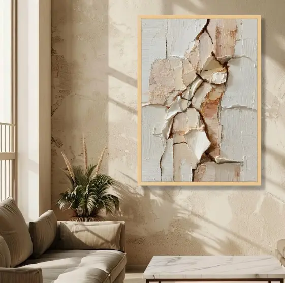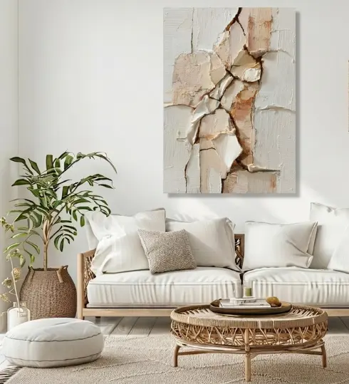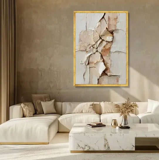 5. Neutral Abstract Impasto Canvas Art, Thick Beige Tones, Modern Home Decoration