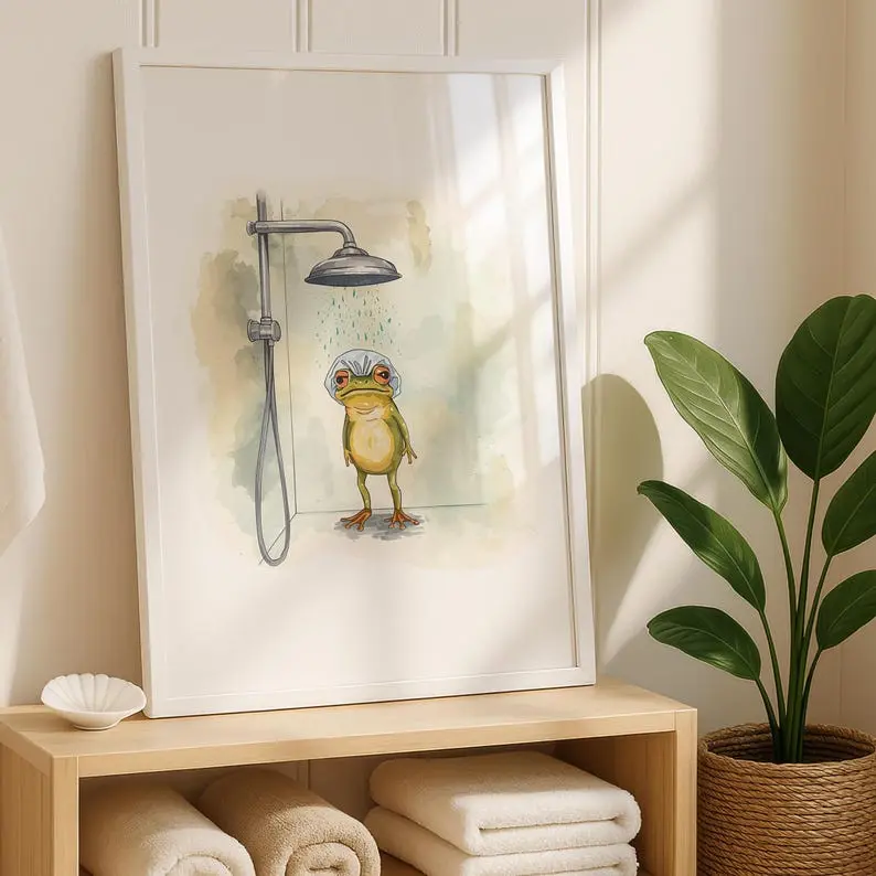[No Frame] Funny Frog Bathroom Art Print, Cheeky Home Decor, Bathroom Wall Decor