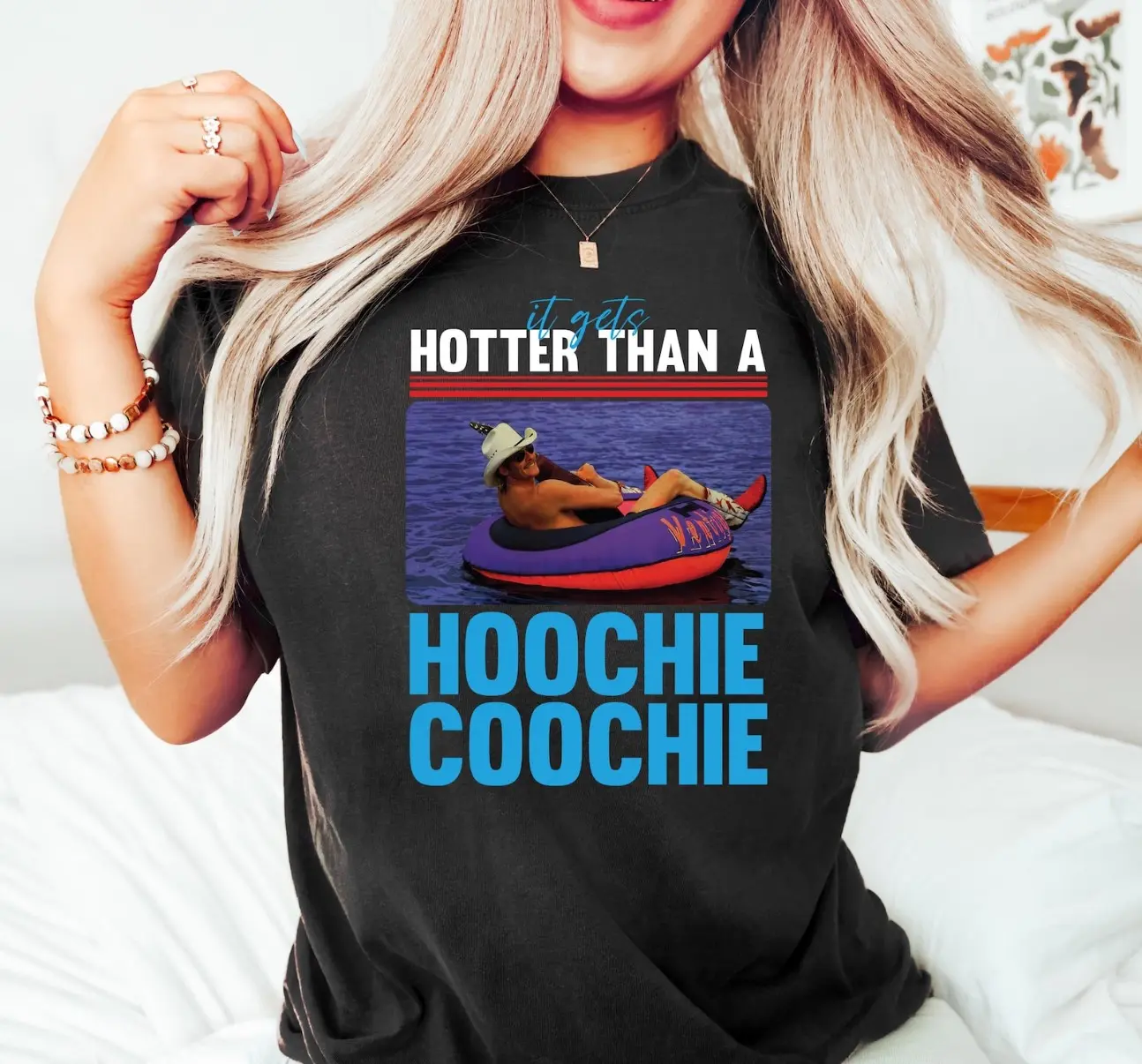 Hotter than a Hoochie Coochie Summer Shirt, Meme Summer Vacation T Shirt, Music Lover Tshirt, 90s Country Music, Trendy Summer Shirt