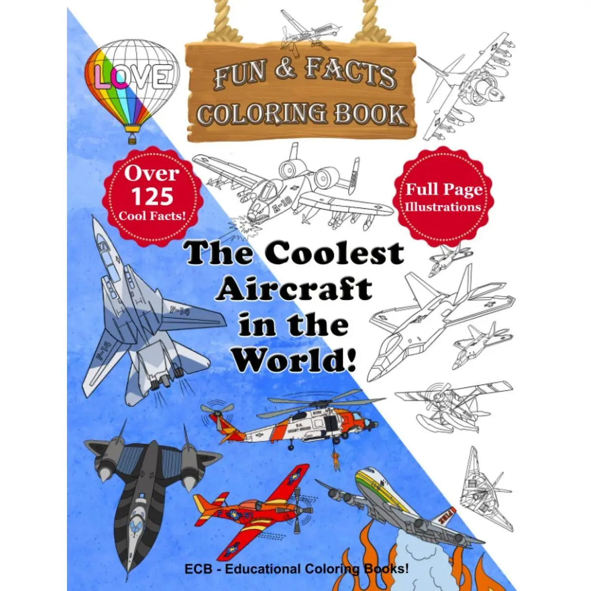 This book will give your child long hours of fun and learning while coloring the beautiful illustrations of amazing aircraft such as fighter jets and helicopters, historic planes, airships, hot air balloons, passenger planes, transport planes, rescue helicopters, nuclear bombers, presidential planes, firefighting planes, and many many others!