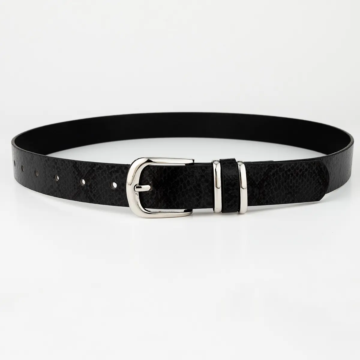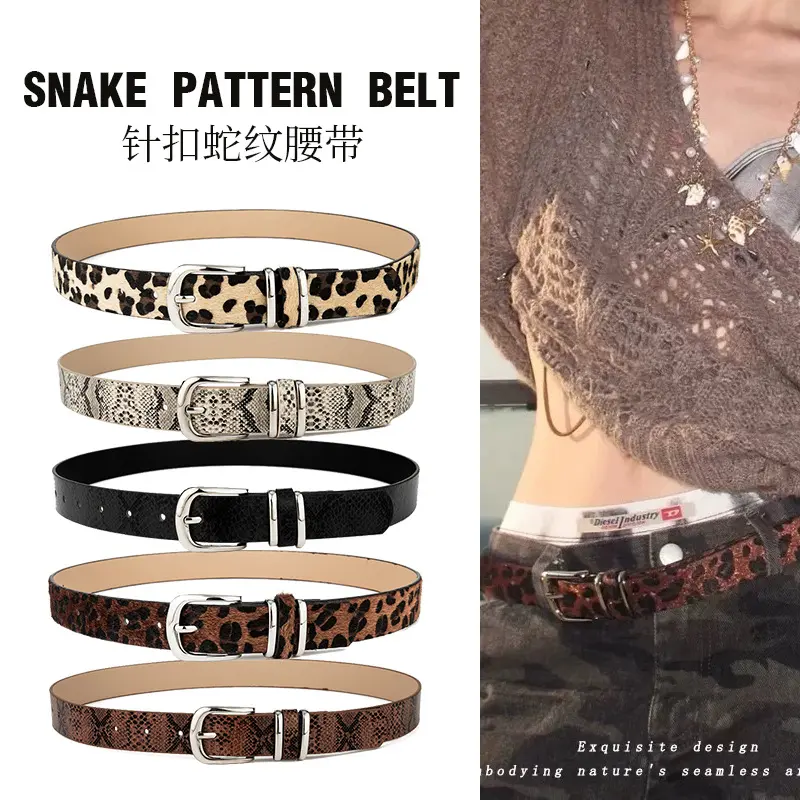 Four-season Y2K pin buckle snake print belt, spicy girl leopard print subculture millennium accessory, simple punk leather belt for women
