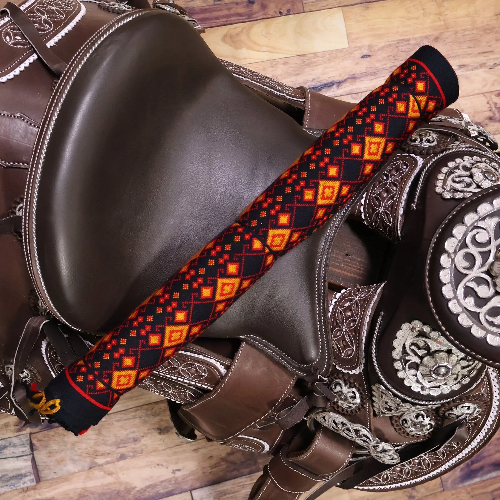 Traditional charro saddle sarape in a fino diseño pattern and classic charrería style to your montura charra.