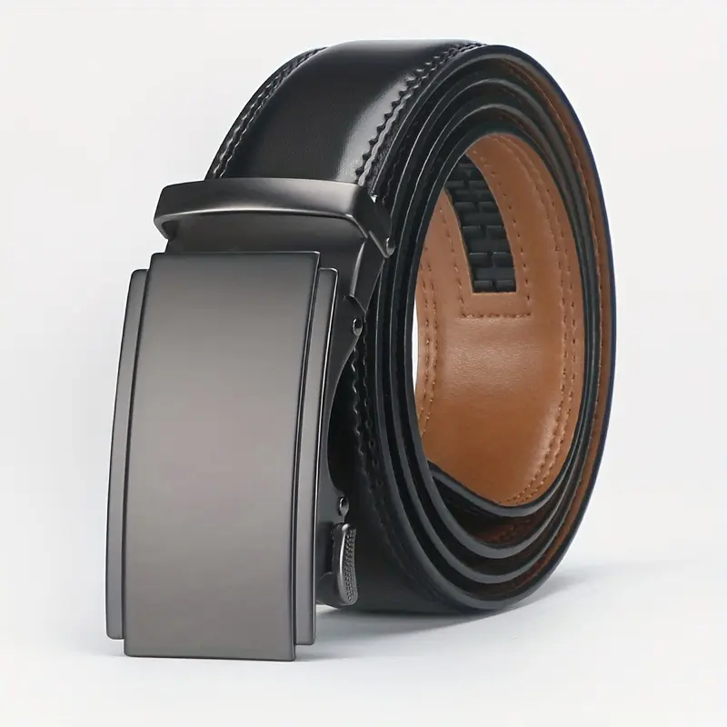 Men's automatic buckle belt, leather belt for young men, business automatic buckle, matte finish