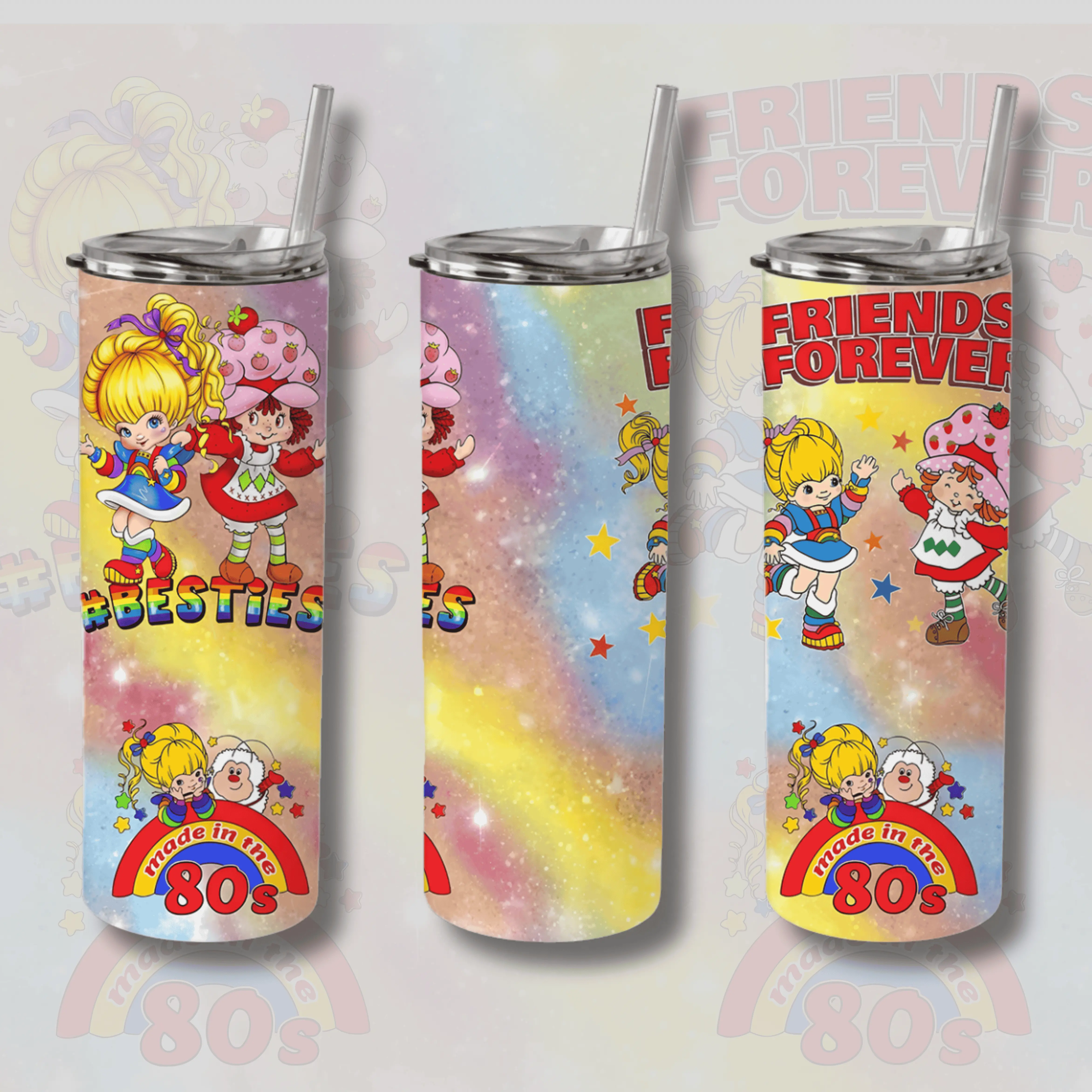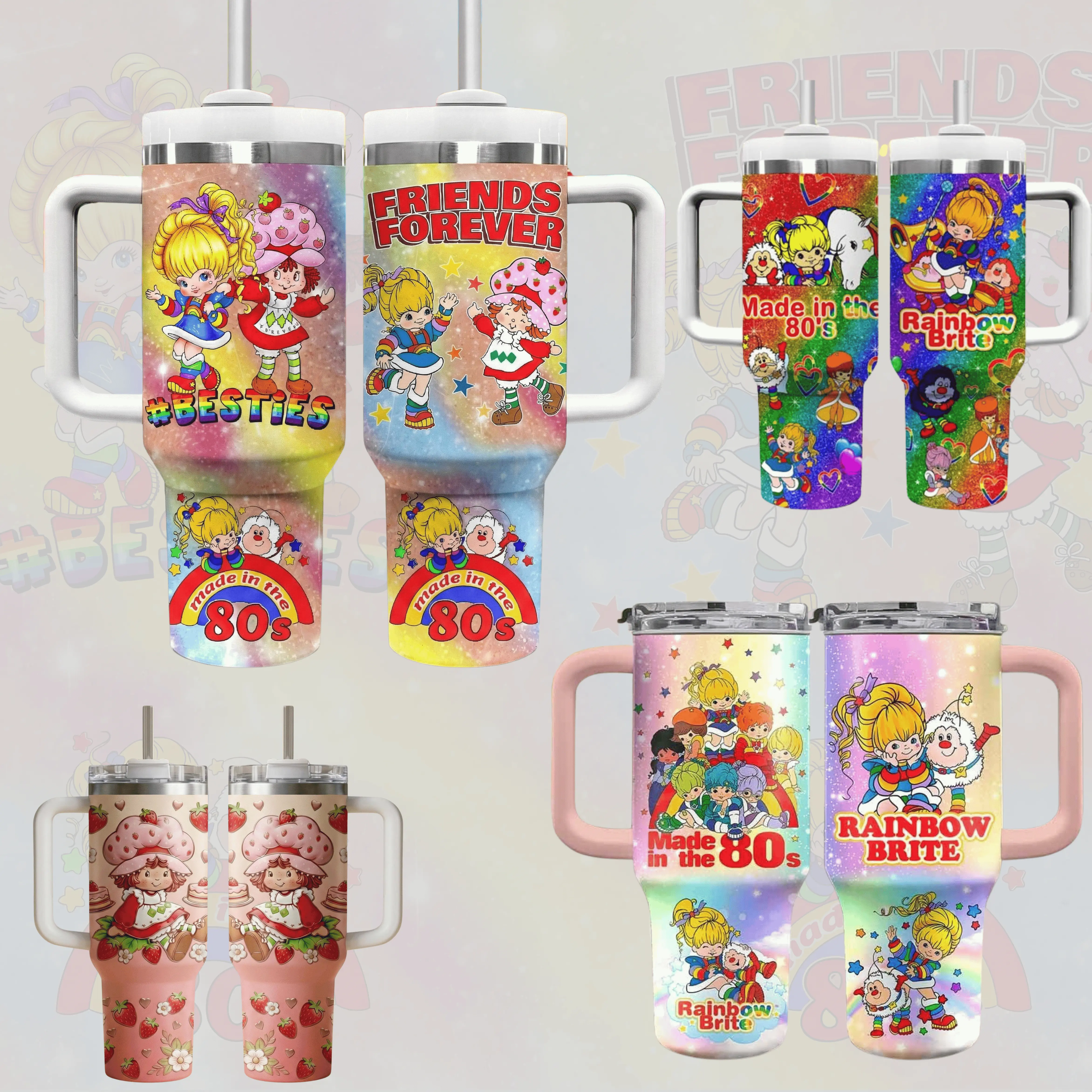 Strawberry Shortcake And Rainbow Brite Cartoon Custom Cup 40 oz 20 oz 30 oz 14 oz Tumbler With Handle, 80s ,A perfect gift for family and friends