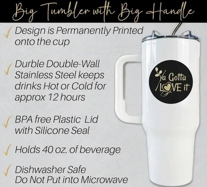 FITS MOST CUP HOLDER: Perfect size T-shape 40 oz tumbler with sleek and narrow bottom design snugly fits in most cup holders for easy portability, you can drink it safely while driving. Tumbler comes with lids and straws has ergonomic handle, so you can easily hold the cup, not easy to slip from the hand, easy to carry wherever you go!