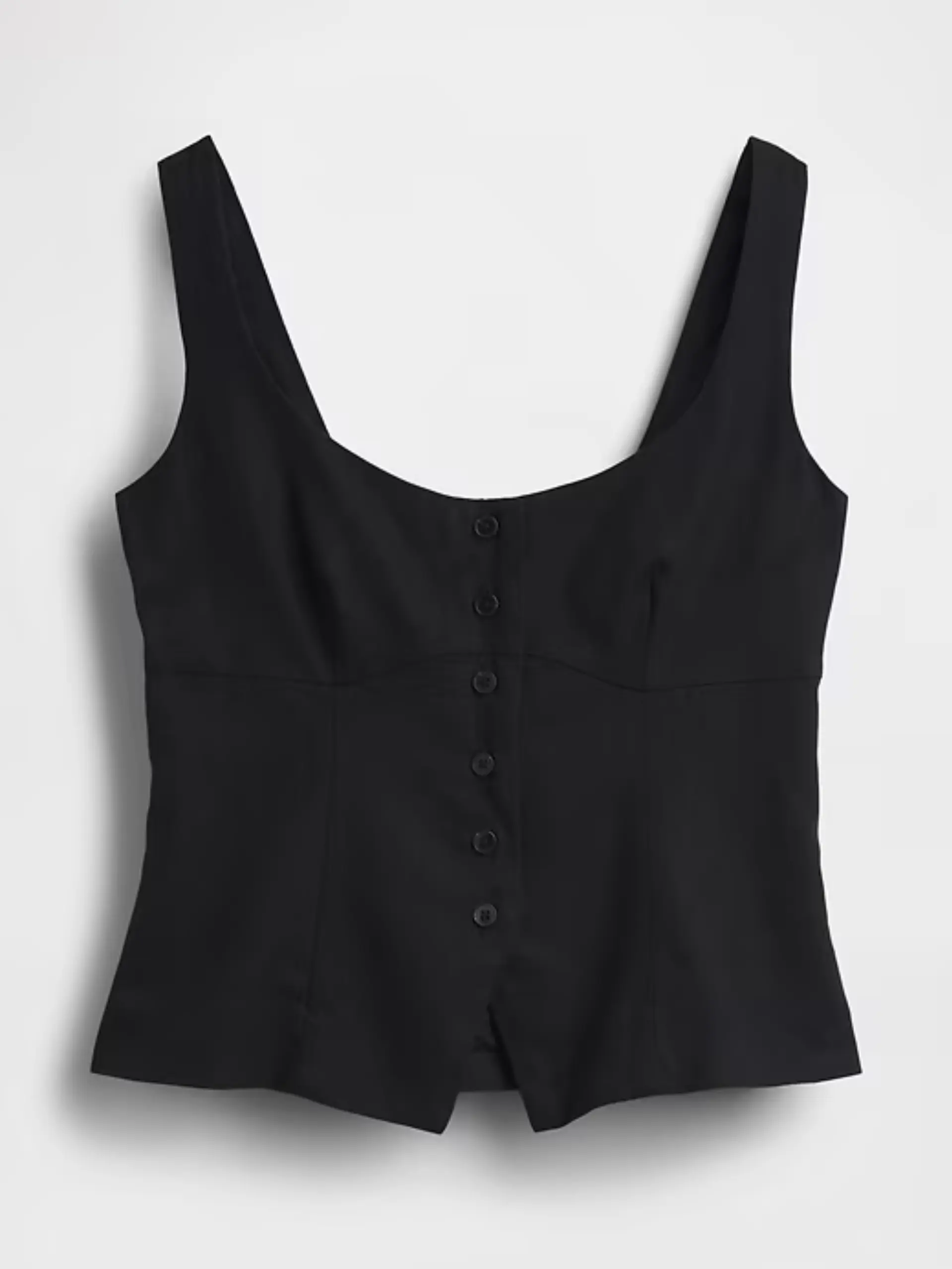 ·Soft, heavyweight linen-blend fitted corset vest top.