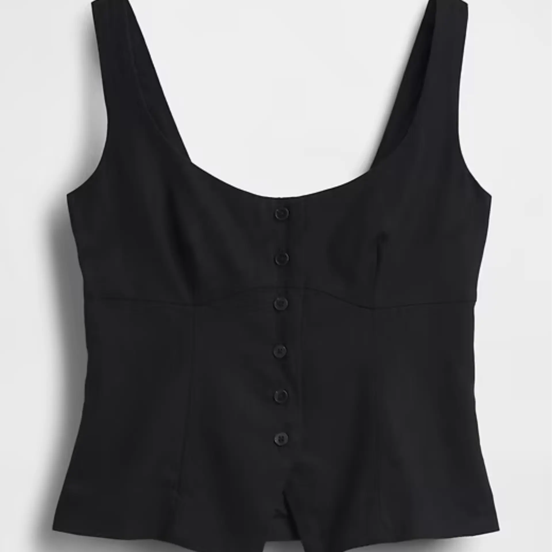 ·Soft, heavyweight linen-blend fitted corset vest top.