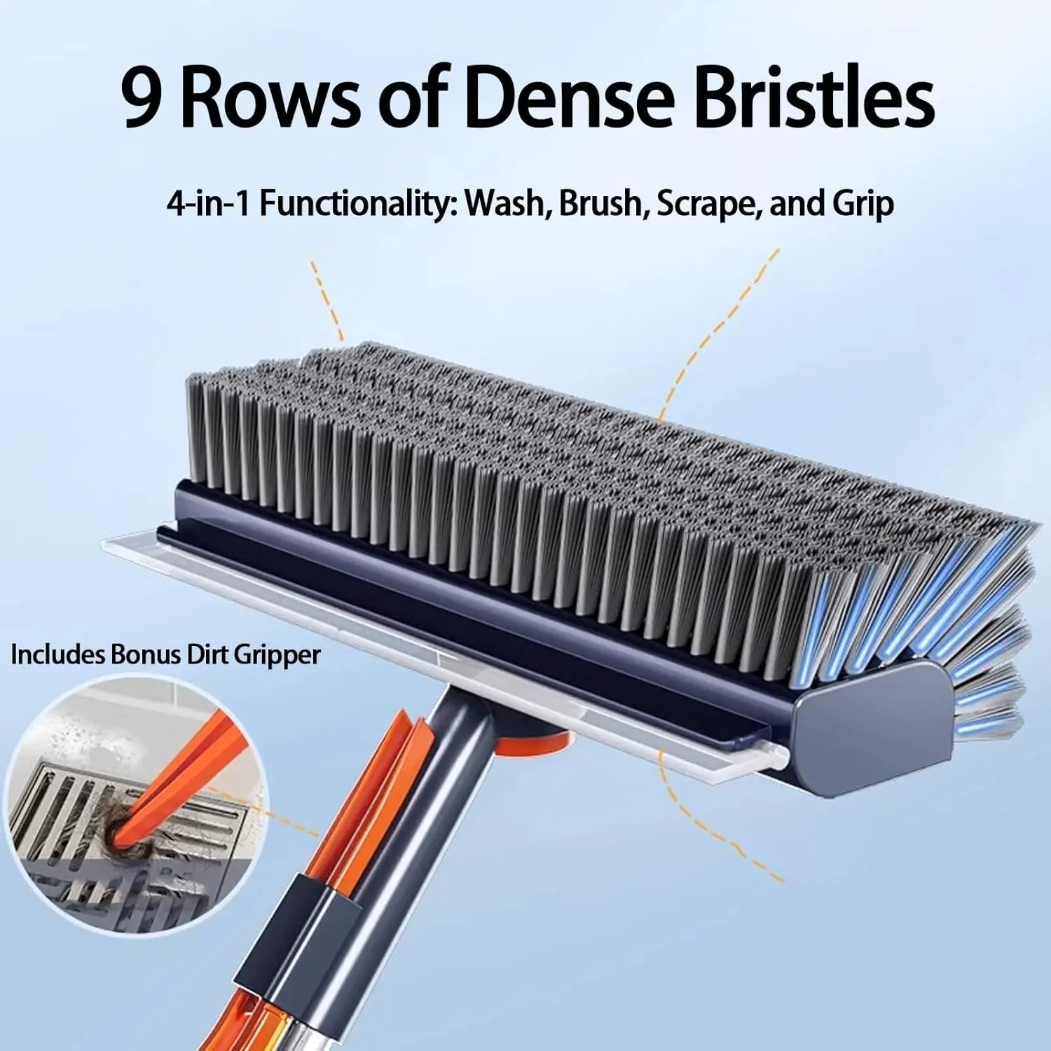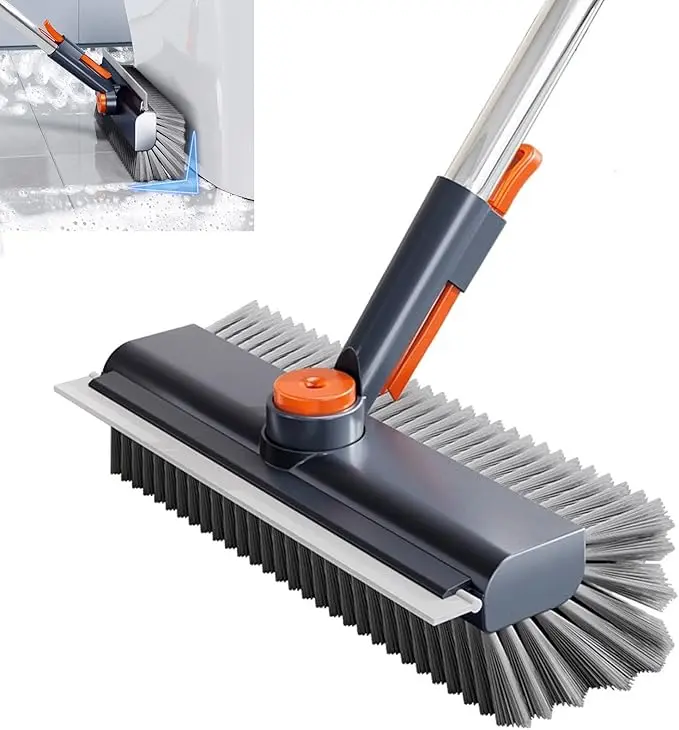 ·3 in 1 Cleaning Design: This 3 in 1 Adjustable Scrub Brush combines a scrub brush and built-in squeegee for daily cleaning. Helps loosen dirt and guide water away, making floor and surface cleaning more efficient.