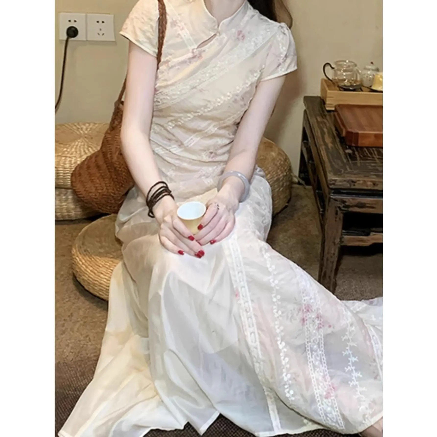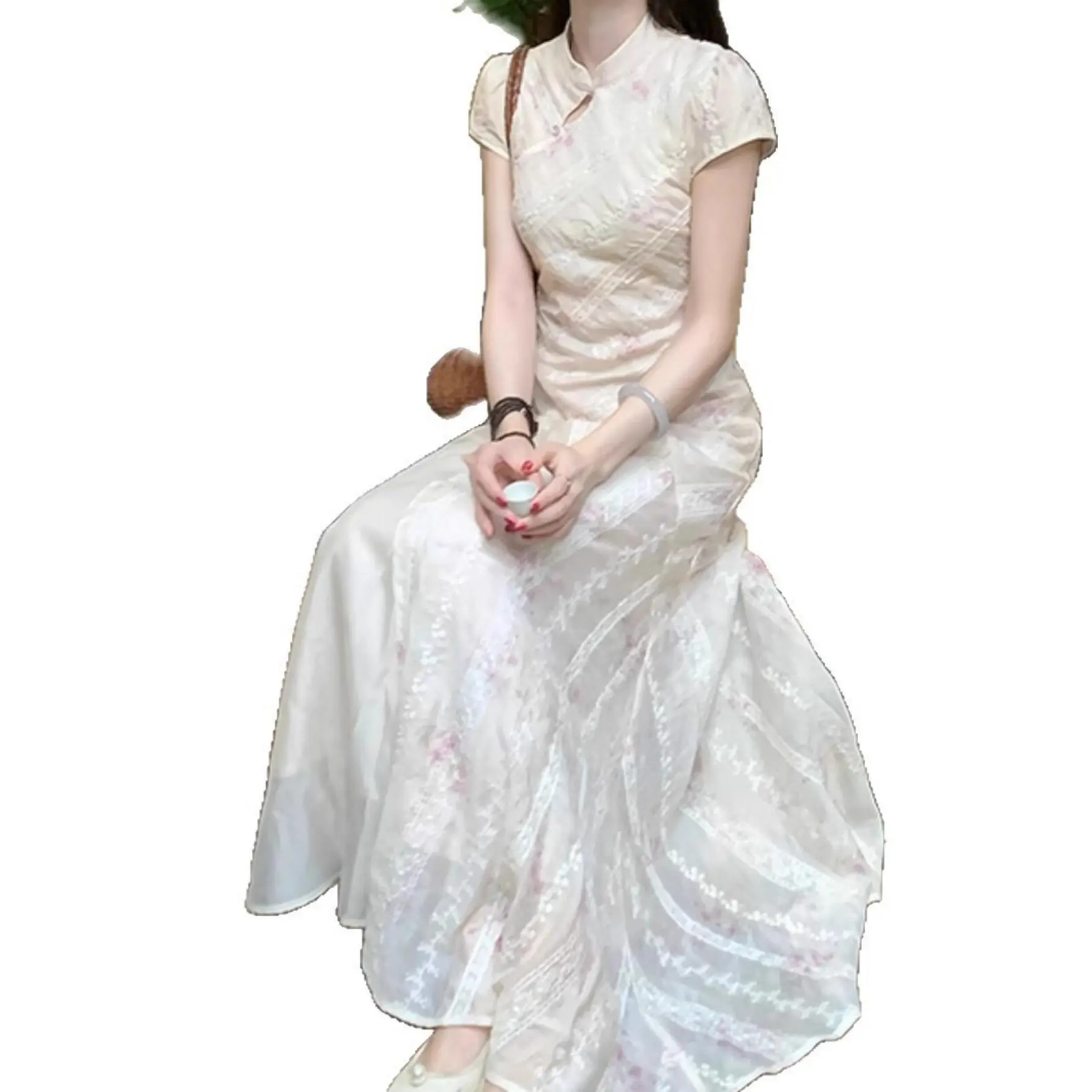 SYHAN 2026 Latest Women's Spring Modern Chinese Floral Improved Qipao Niche Design Gentle Gorgeous Comfortable Fashion Maxi Dress