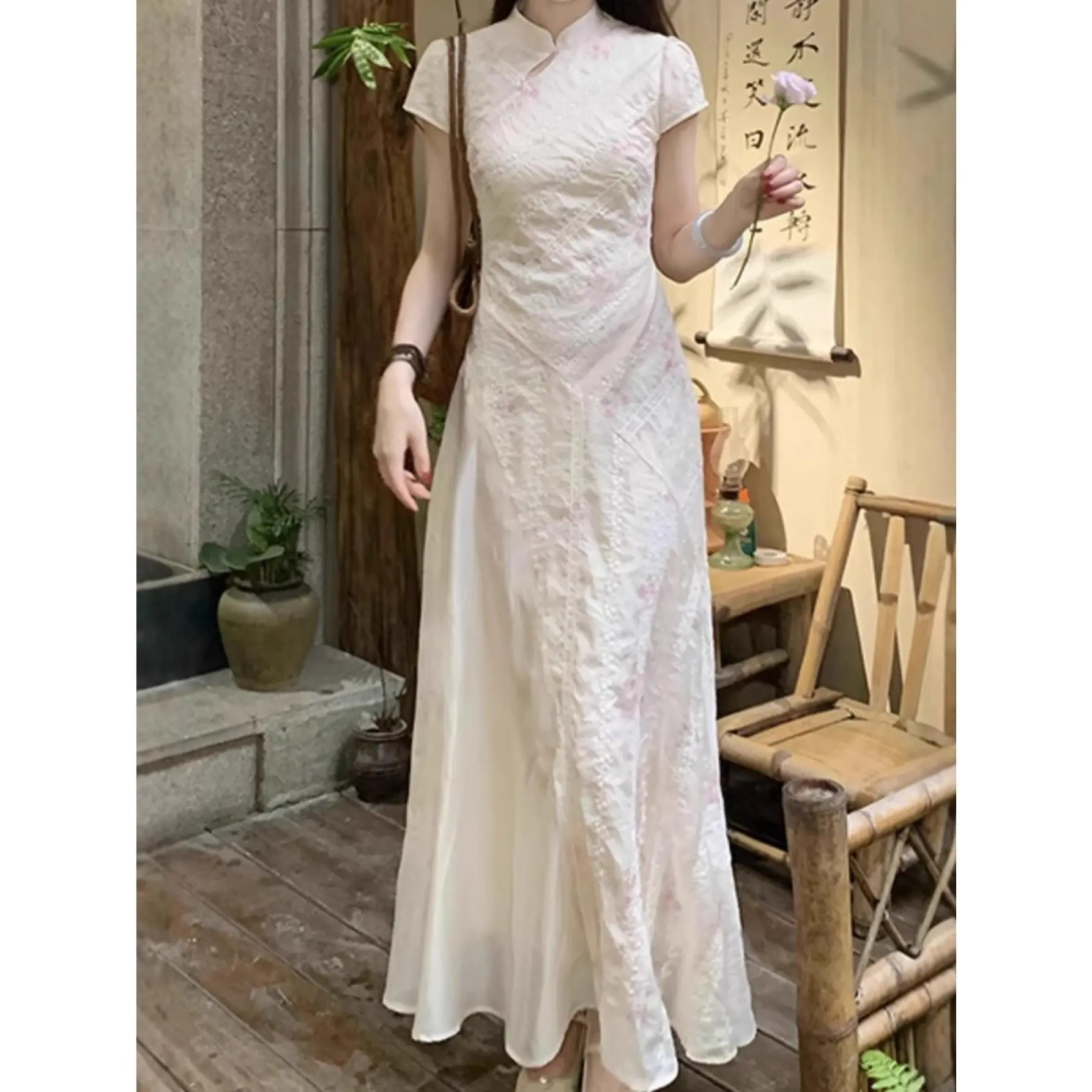 Elevate your wardrobe with this modern Chinese Floral Qipao. Perfect for spring, it combines traditional elegance with contemporary design. The dress features a niche design that adds a unique touch. It's gentle, gorgeous, and comfortable, making it ideal for various occasions. The maxi length ensures a stylish and flattering fit.