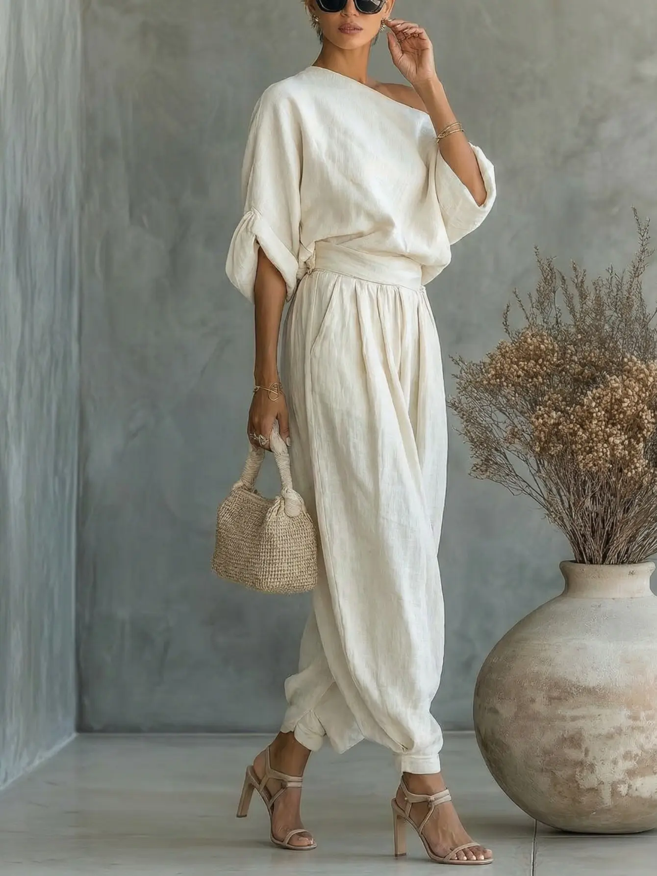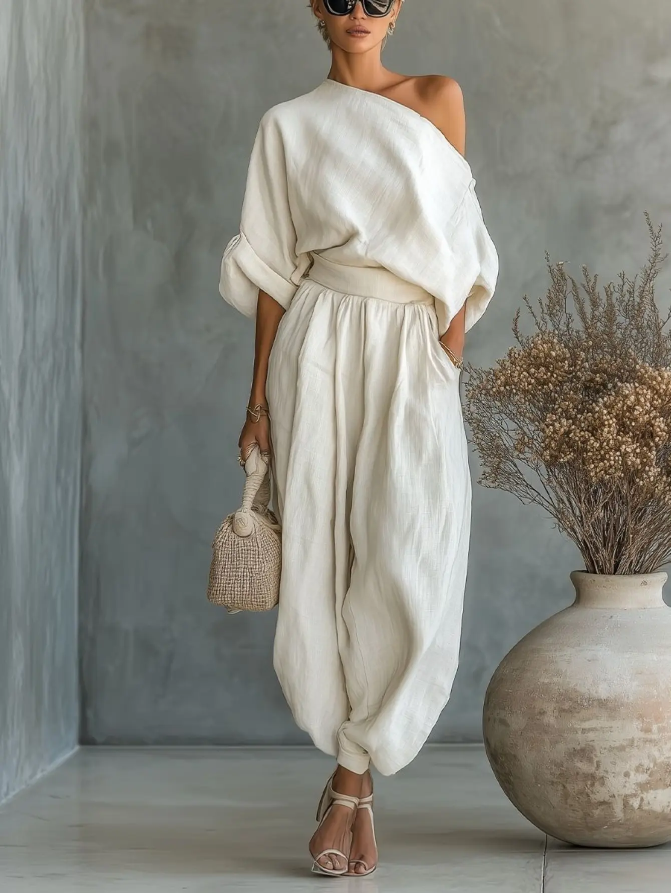🌟 Two-Piece Outfit: Loose Off-Shoulder Top & Jogger Pants