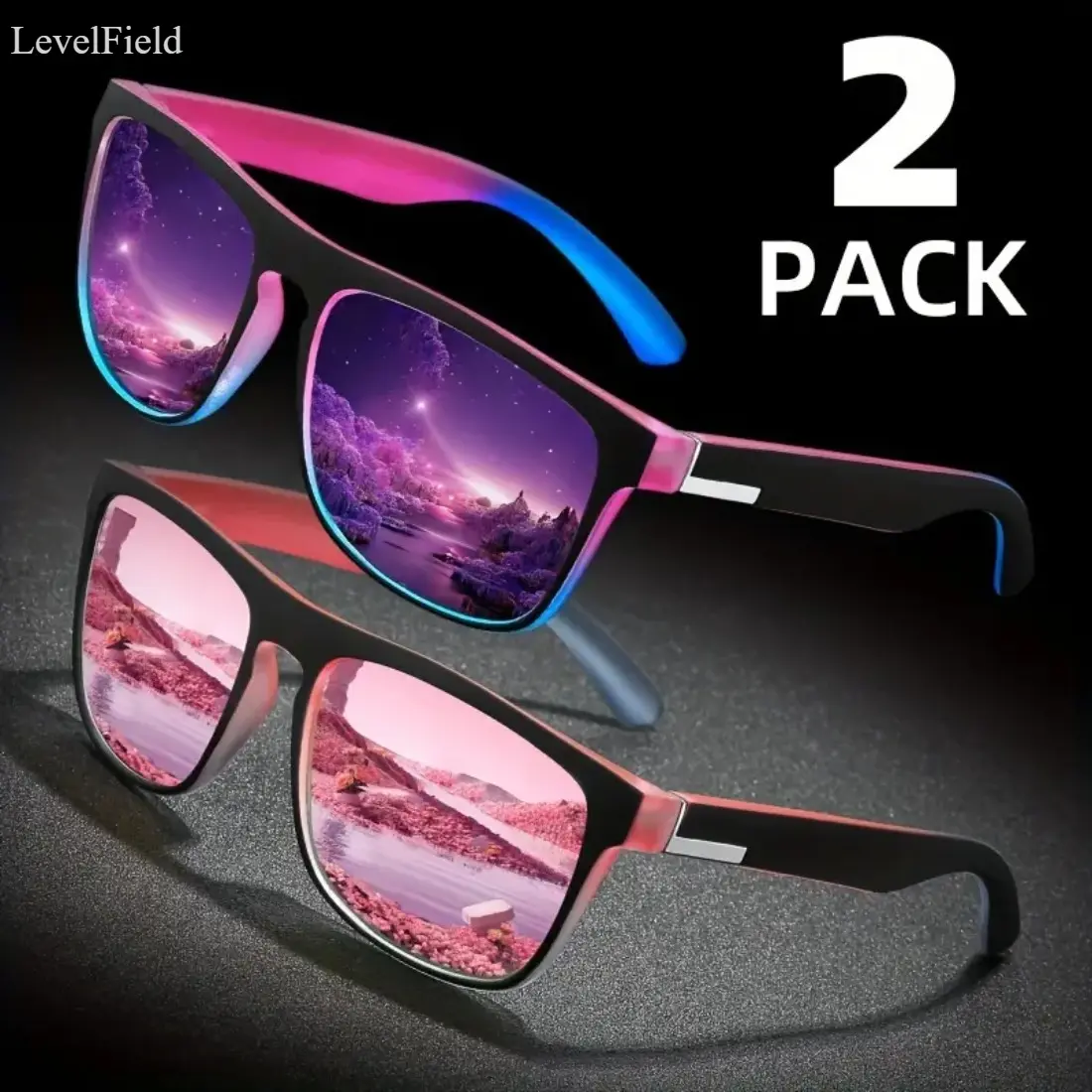 LevellField Retro Square Sunglasses for Men Women Colored Tinted Lens UV400 Classic Frame Lightweight Durable Fashion Eyewear for Driving Party Street Style Daily Wear 2 Pack