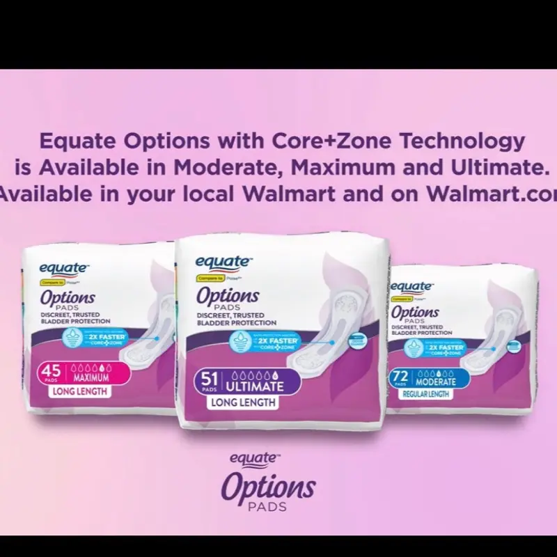 Equate Options Pads Discreet Trusted Bladder Protection 2X Faster Moderate Regular Length 72 Pads