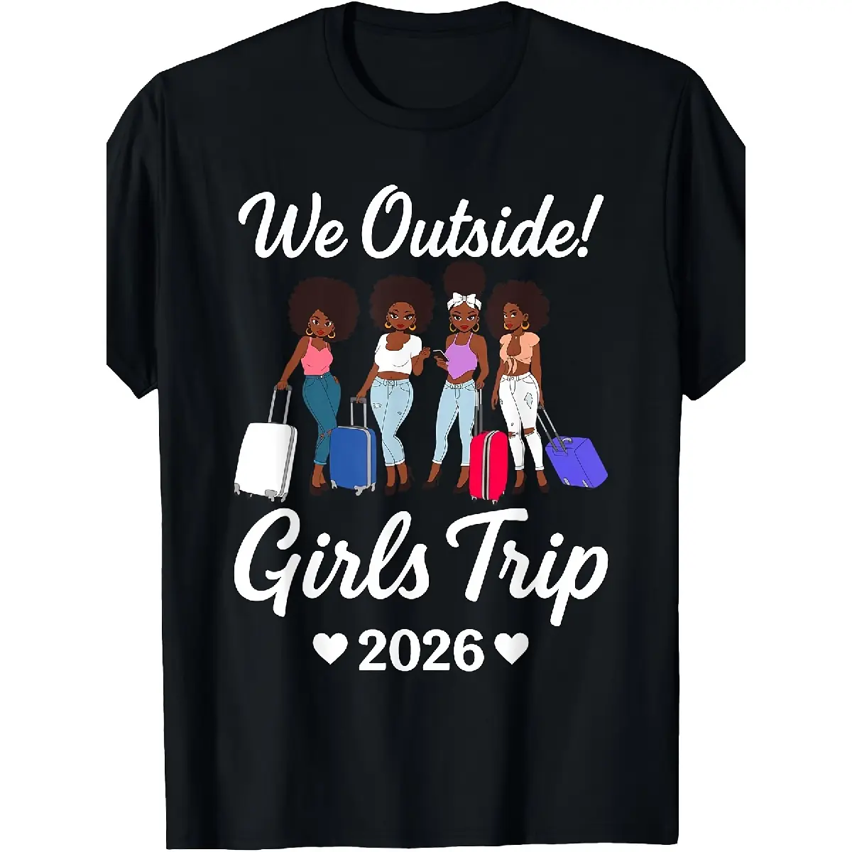 We Outside Girls Trip 2026 Matching Group Vacation Outfit T-Shirt | Same Style for Men And Women, 2025 Summer, Short-Sleeved, Printed, Pure, 220G, Crew Neck, Slight Stretch, Loose Fit, Perfect for Adults, Drawing Pattern
