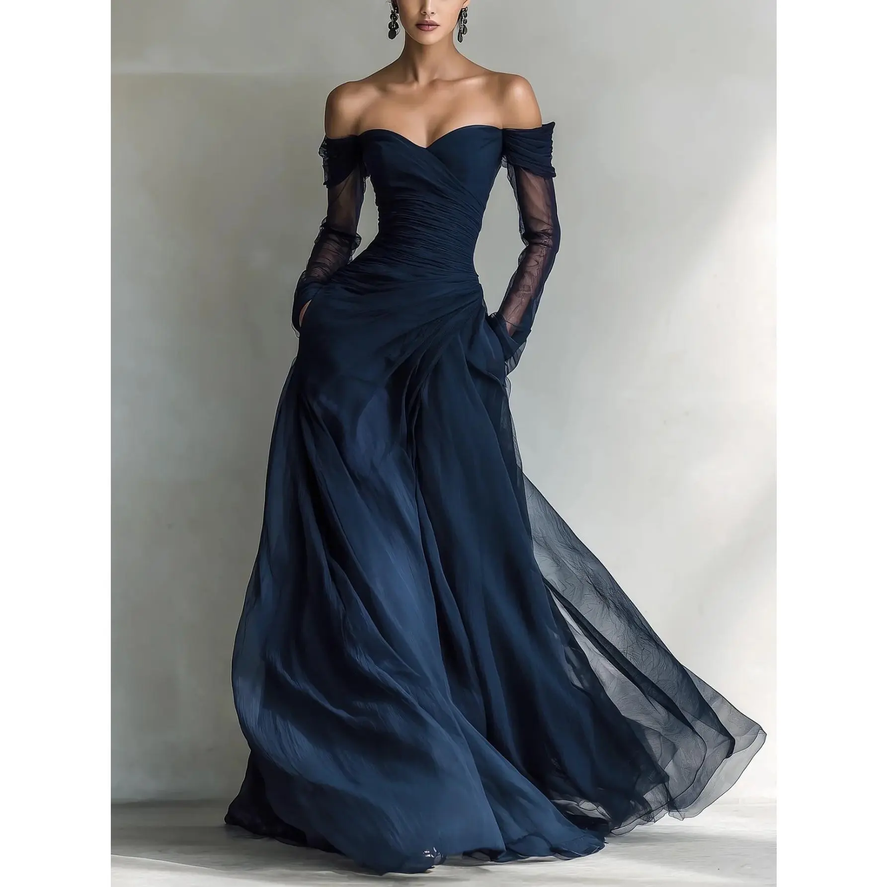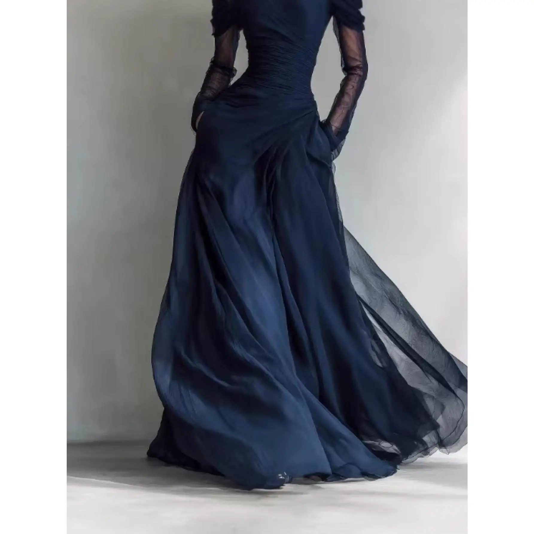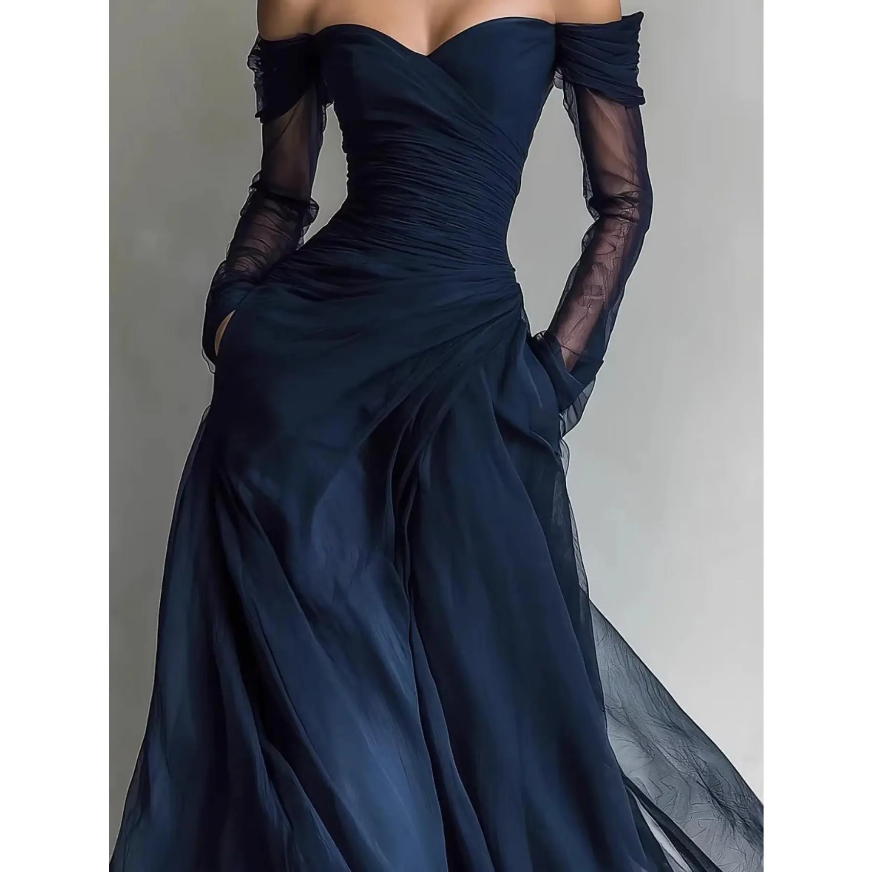 This strapless maxi dress is ideal for parties, evenings, and formal events. Its mesh patchwork design adds a touch of sophistication. The dress is perfect for proms and other formal gatherings. It's a stunning choice for any woman looking to make a statement.