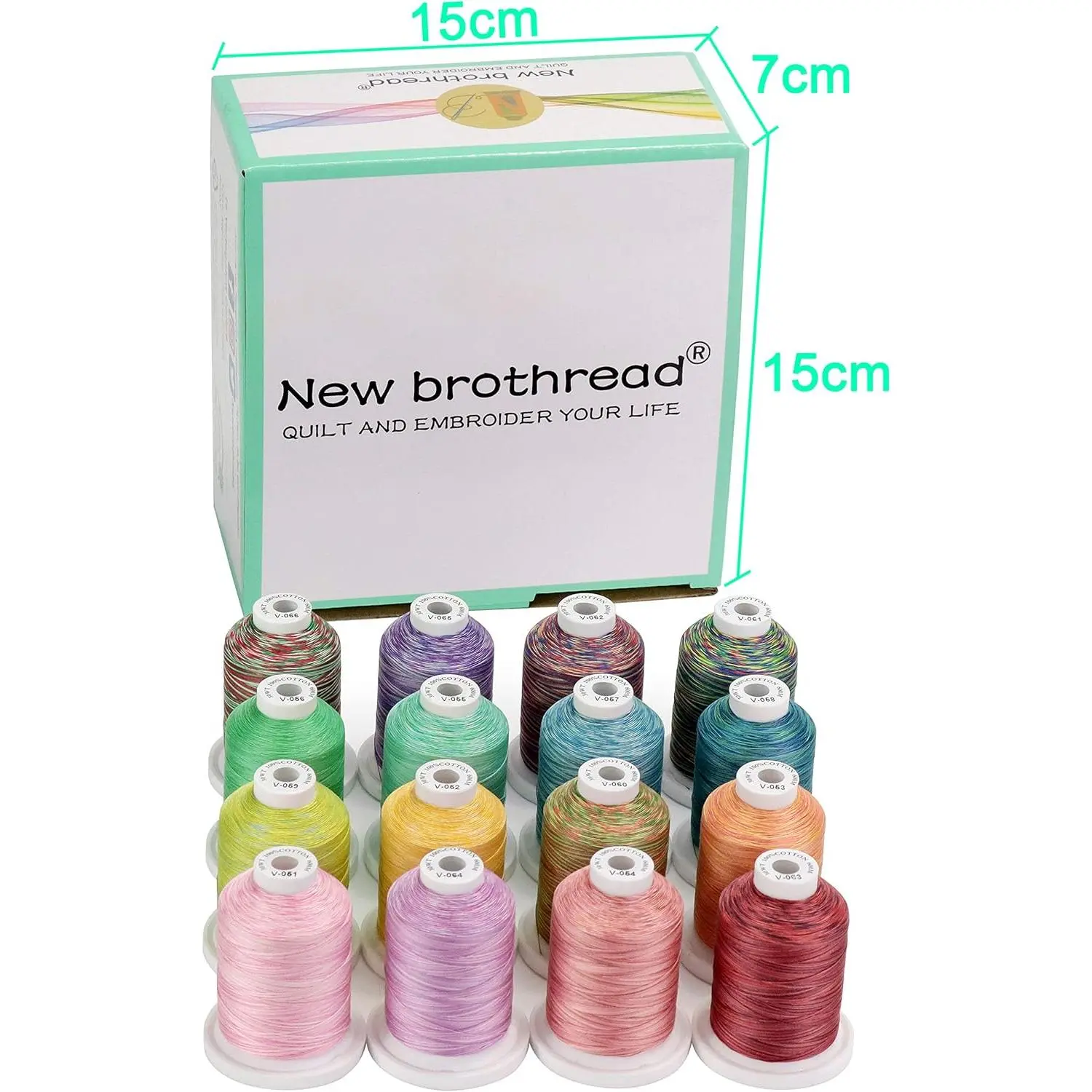 ★100% Mercerized and Variegated cotton thread:made from high quality, Extra-long staple cotton which is stronger than normal cottonproduced under special gassing and mercerizing process, giving thread less lint, smoother surface, greater luster and matt look.★Multi-purpose: 600M(660Y) each spool.Single-Ply yarn is 50 weight, and our cotton thread is 3-Ply twisted bonded ( the actual weight is 30WT = Tex 33 for three plies) can be widely used for quilting, serger, piecing, machine sewing, hand sewing, heavy machine embroidery and light hand embroidery etc.★Ideal Choice For Natural Fabrics: Our mercerized and variegated cotton thread is especially suitable for natural fabric like cotton and linen fabrics.Since it has almost same washing shrinkage rate as natural fabric, it can avoid causing pucker after washing because of the different shrinkage between fabrics and threads.★Spool with Locking Base Resists Thread Tangling: Our new generation snapping spool has a locking base, which is designed for keeping your thread tails from unwinding.If your regular sewing machines haven’t horizontal spool feed and you want to use our good snapping spool, you need a upright thread stand to help leading thread from snapping spools to your machines.★★★Tips for better using New brothread mercerized cotton thread: 1), our mercerized cotton thread is thicker than normal 40WT sewing or embroidery thread, we recommend use needles with large eye (≥80/12) to prevent stripping.2), the cotton threads do not stretch a great deal like polyester or nylon threads, please slow down the stitching speed when you have breaking problem.