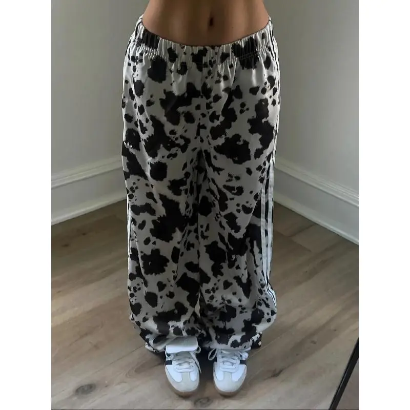 Features a random cow pattern that adds a distinctive touch, not commonly found in typical athletic wear. This unique print makes the pants stand out, perfect for those who love a bold, unconventional style. The design is ideal for casual streetwear, bringing a fun and edgy vibe to your daily outfits.