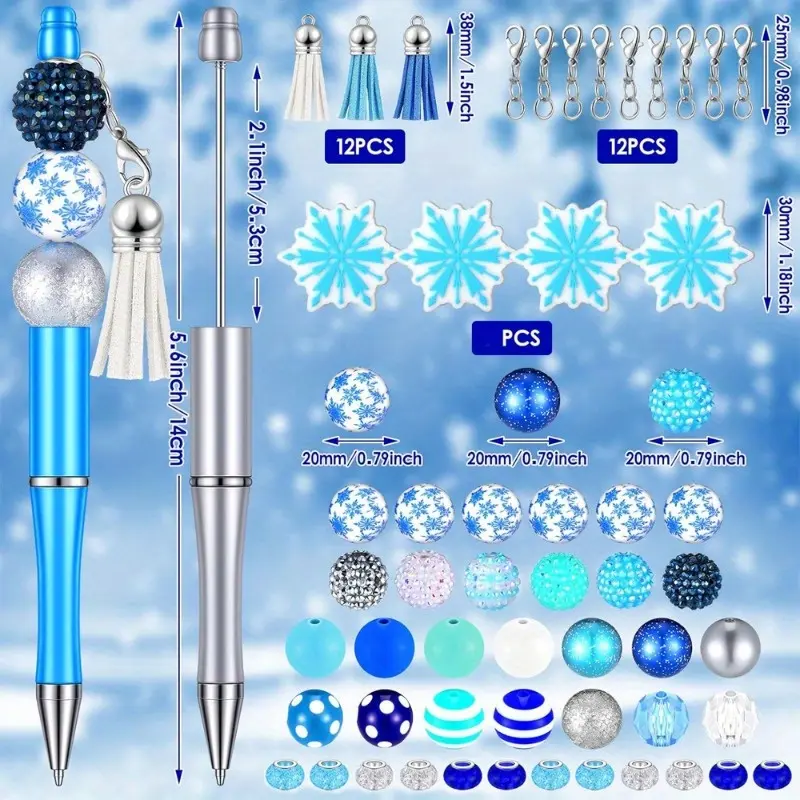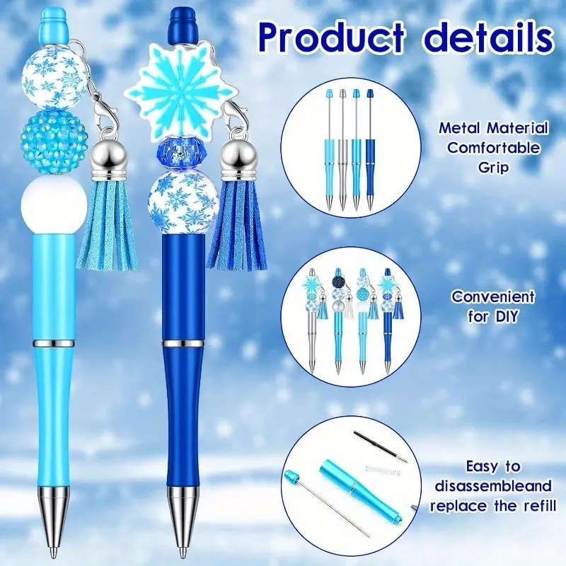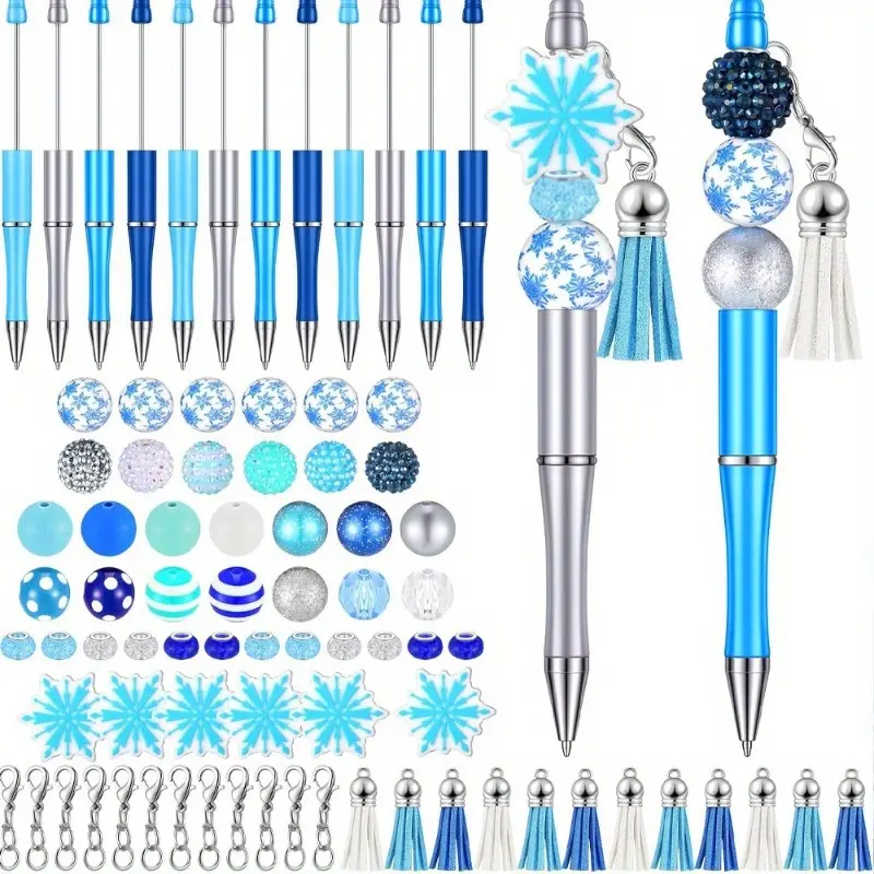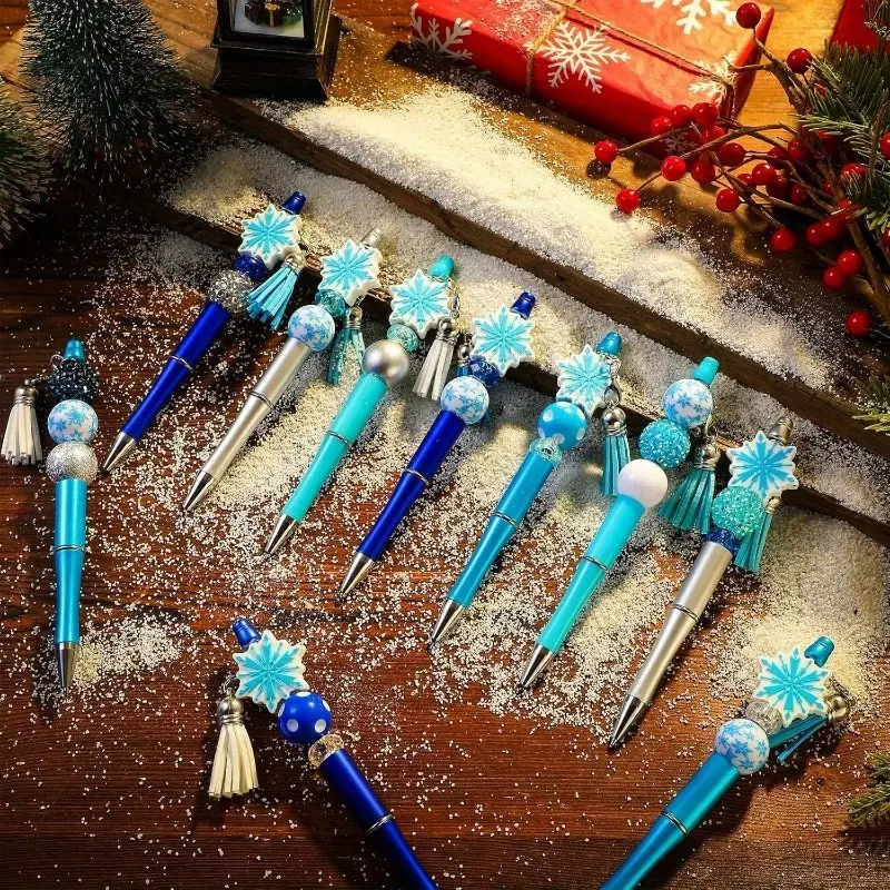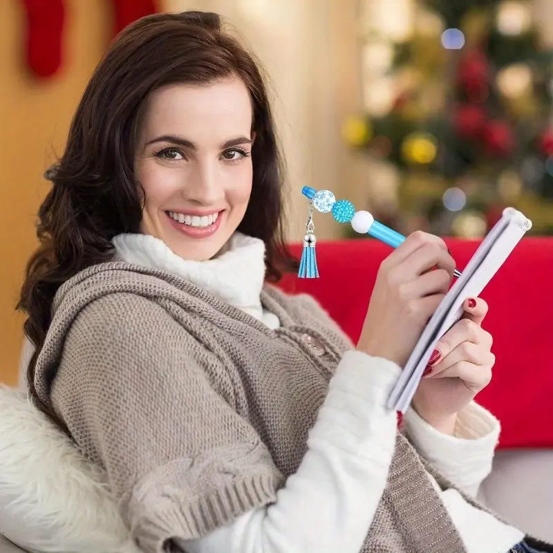 12 Pcs Plastic Beadable Pens with 50 Pcs Colorful Beads 12 Tassels 12 Pendants Assorted Colors Bead Pens for DIY Making Kit for Pens Beaded Pens for Office Nurse
