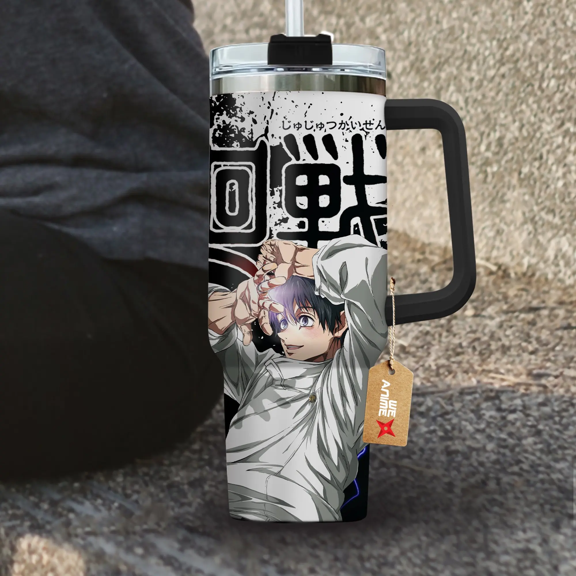 STORMMECH- Yuta Okkutsu 40oz Handle Tumbler – JJk Stainless Steel Travel Mug, Anime Inspired Vacuum Insulated Cup, Large Iced Coffee Tumbler, Manga Fighter Drinkware, Otaku Gift for Him Her