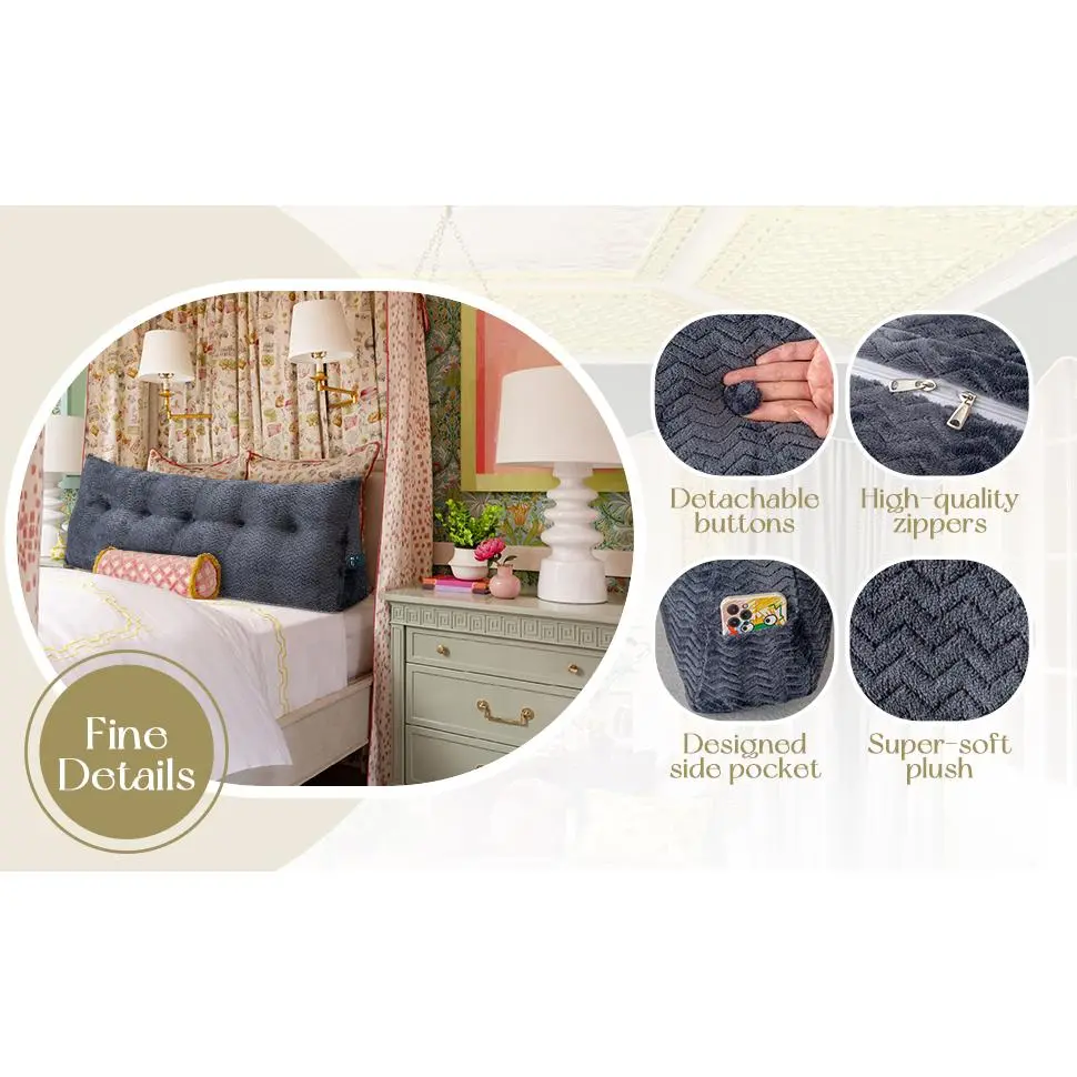 [Comfortable and Supportive Headboard Cushion]Crafted with high-quality soft Velvet fabric and filled with two types of premium PP cotton, this headboard cushion offers exceptional comfort and support.Perfect for those who love to read or relax in bed without putting strain on their back or neck.It provides excellent back, lumbar, and neck support, making it a must-have for anyone seeking relaxation.[Revolutionary Pillow for Comfort]Whether you're lounging, watching TV, or reading, this triangular bolster pillow offers the perfect balance of support, comfort, and durability.It's a fantastic option for those who spend extended periods in bed, helping to alleviate discomfort and providing extra relaxation for late-night activities.[VERSATILE USE]Ultra-soft and incredibly comfortable, the triangle wedge pillow offers great back support and fills the gap between your mattress and headboard or wall, preventing pillows from slipping down.It’s ideal for dorm rooms, daybeds, sofas, couches, or even as floor seating for kids' playrooms.[Stylish and Easy to Maintain]Designed for both comfort and style, this pillow features a removable cover with detachable buttons (zip closure) that is machine washable, making it easy to keep clean.Its sleek, modern design complements various home décor styles, adding a touch of elegance to any space.[Great Gift Choice]Choose this as a gift for Christmas, New Year, Birthday, Anniversary.We bet they will love it as a necessary.