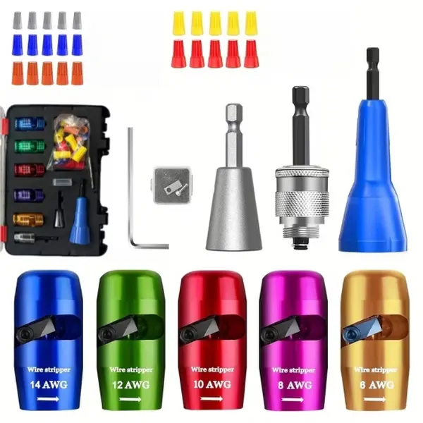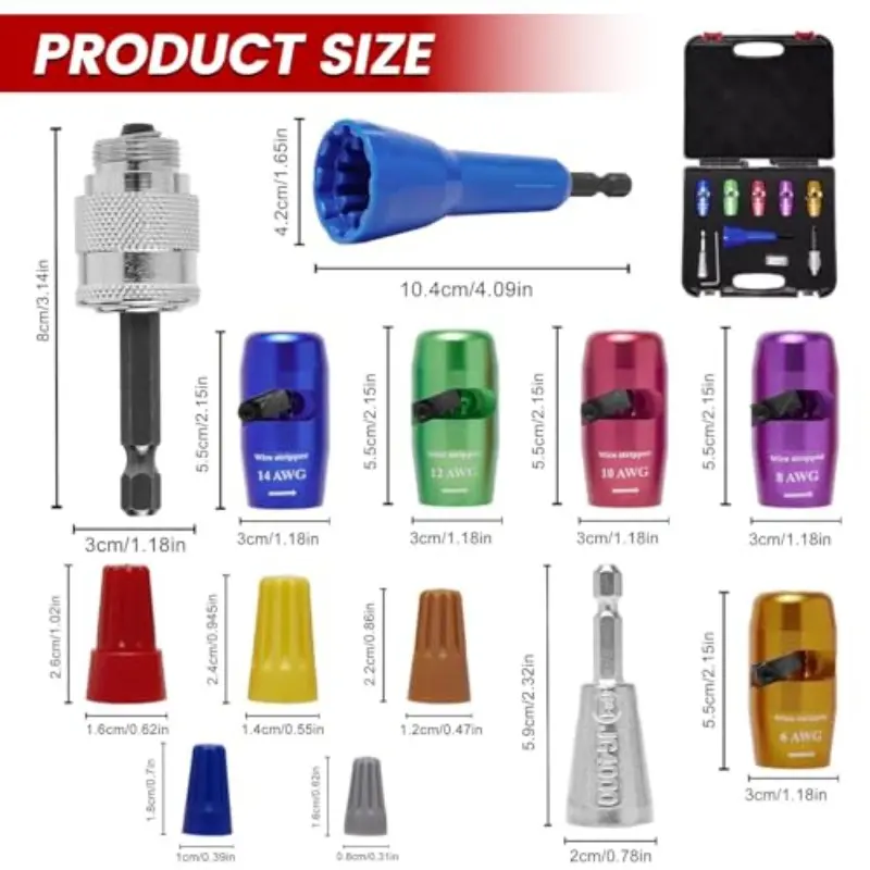 ·2026 New Wire Stripping Tool & Wire Twisting Connector】: Upgraded AWG -Compatible with U.S. wire specifications. Quickly strip wire insulation with this electrically powered tool, saving time and effort. Through an electric drill, the wire sheath will rotate outward along the groove of the wire stripper without harming the wire core. Wire stripper for drill are more convenient and easier than traditional manual wire stripping tools.