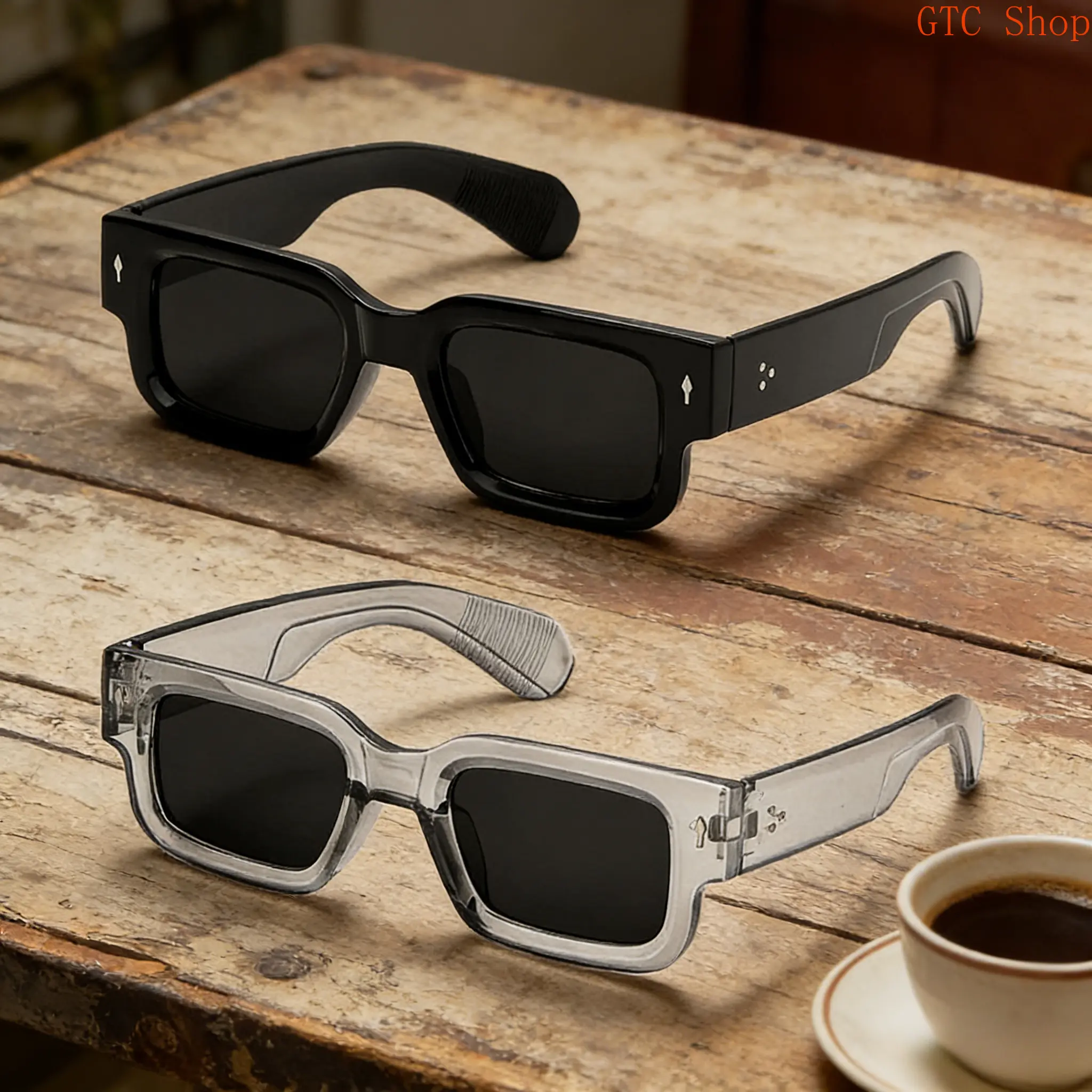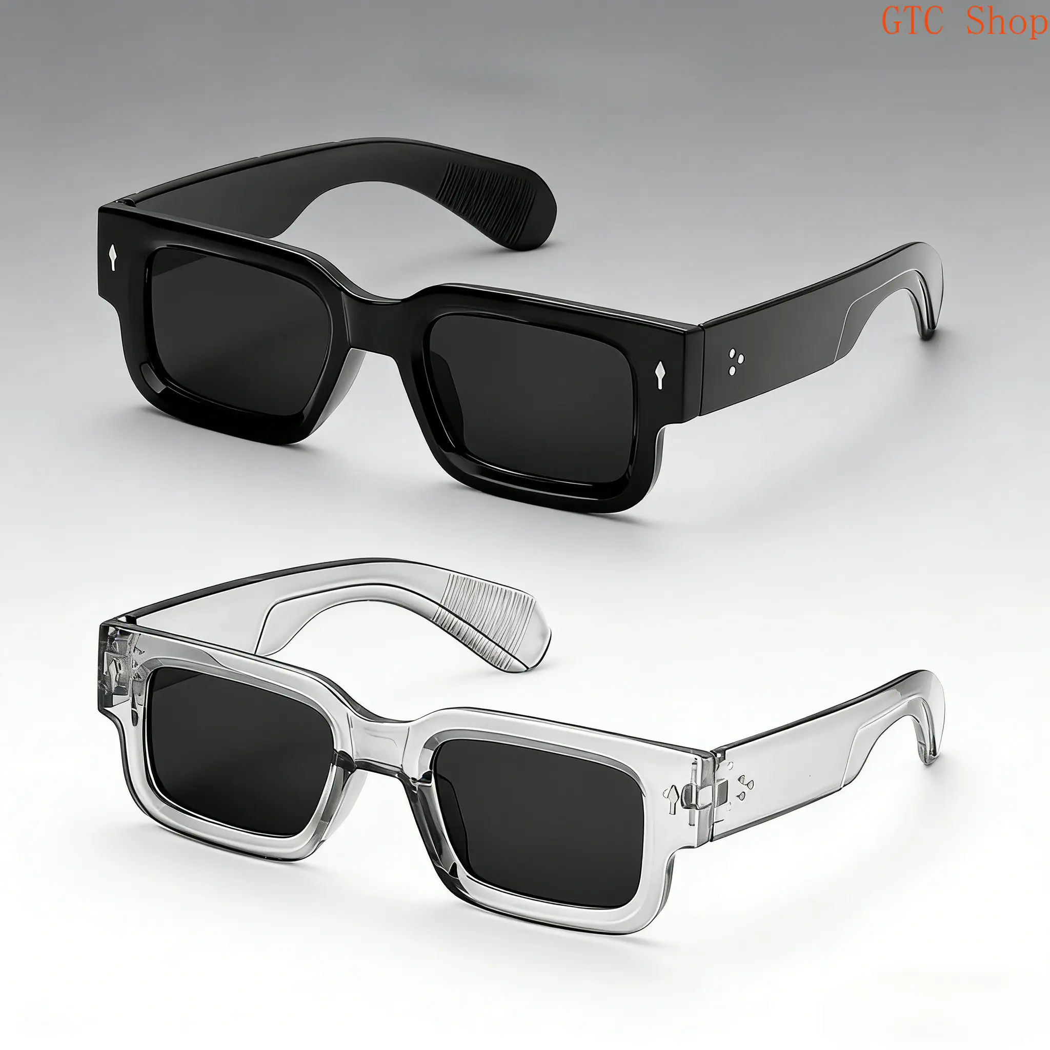 Two Frames, Infinite Styles – Your Pass to Effortless Cool Tired of being boxed into one sunglass look? Our 2-pack retro square sunglasses shatter limits: a bold black frame for statement moments, and a chic transparent pair for laid-back swagger. Perfect for switching up your vibe from sunrise beach trips to sunset rooftop parties! Why This Set Rules Y2K-Ready Design: Classic square frames (2025’s biggest trend!) in black and transparent – nail the retro-futuristic look or keep it minimalist. UV400 Armor: Blocks 100% UVA/UVB rays – protect your eyes during hikes, drives, or long days under the sun. Lightweight Luxury: Crafted from premium acetate for a snug, no-pinch fit – wear all day without discomfort (even during summer heat!). 2-Pack Value: Share with your partner, gift a friend, or stash a pair in your car/backpack – never get caught in a "sunglass rut" again. How to Slay Every Look Black Frame: Pair with leather jackets, denim, or bold prints for concerts, date nights, or edgy street style. Transparent Frame: Match with pastels, whites, or neutrals for brunch, yoga, or a "cool minimalist" vibe. Both: Rotate daily to keep your feed fresh – Instagram-ready style, sorted. Ditch the compromise – this 2-pack gives you versatility, protection, and trend-setting power. Add to Cart Now – Elevate Your Shade Game!