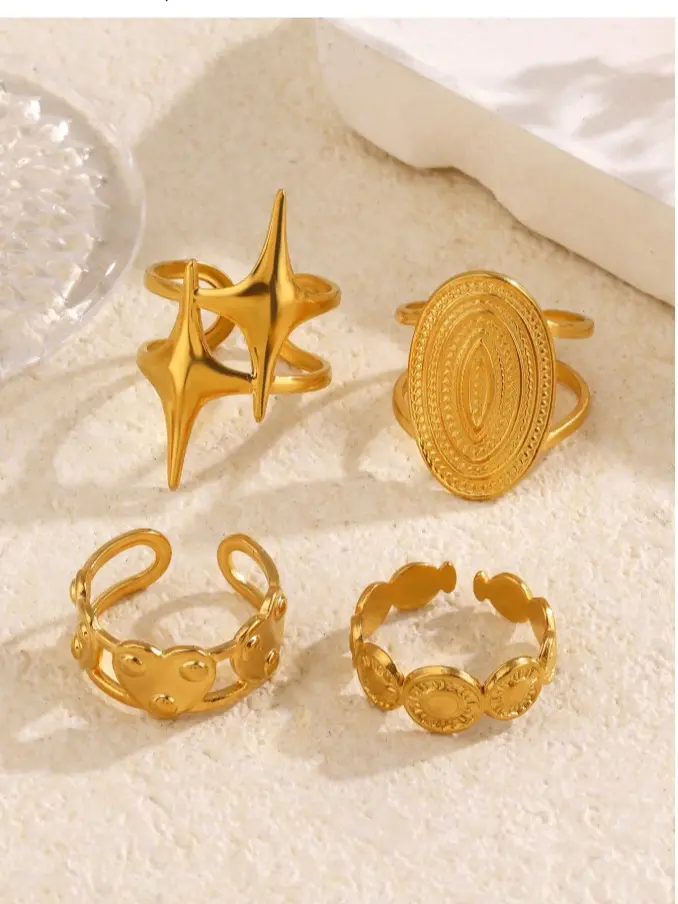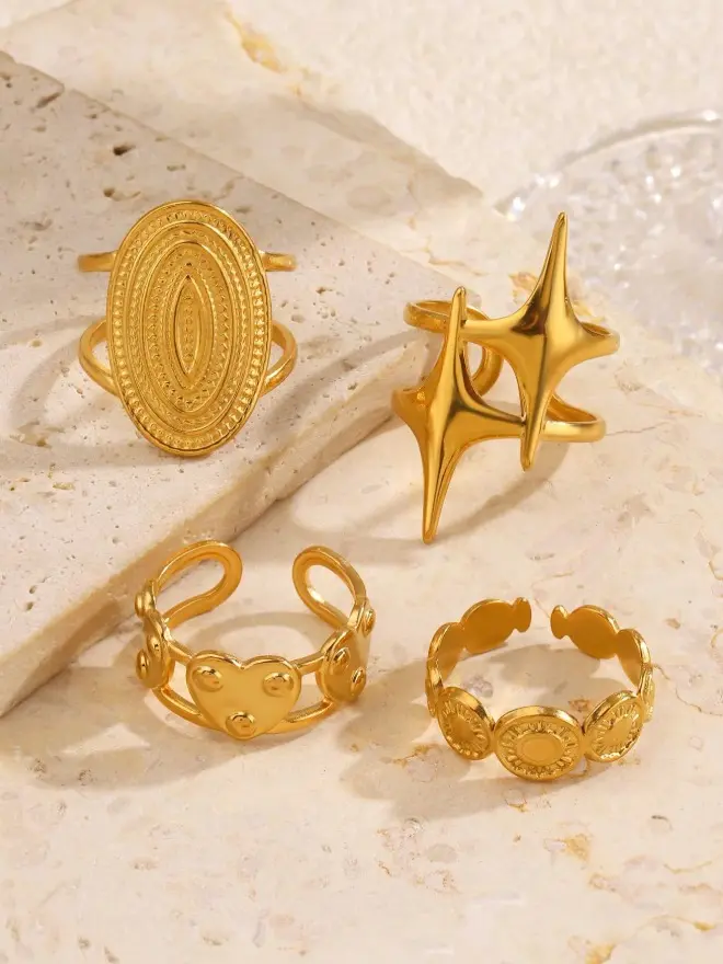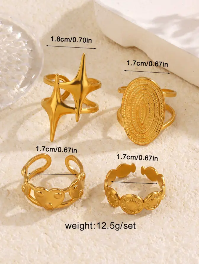 Star & Heart Ring Set for Women Geometric Stackable Rings Elegant Fashion Jewelry