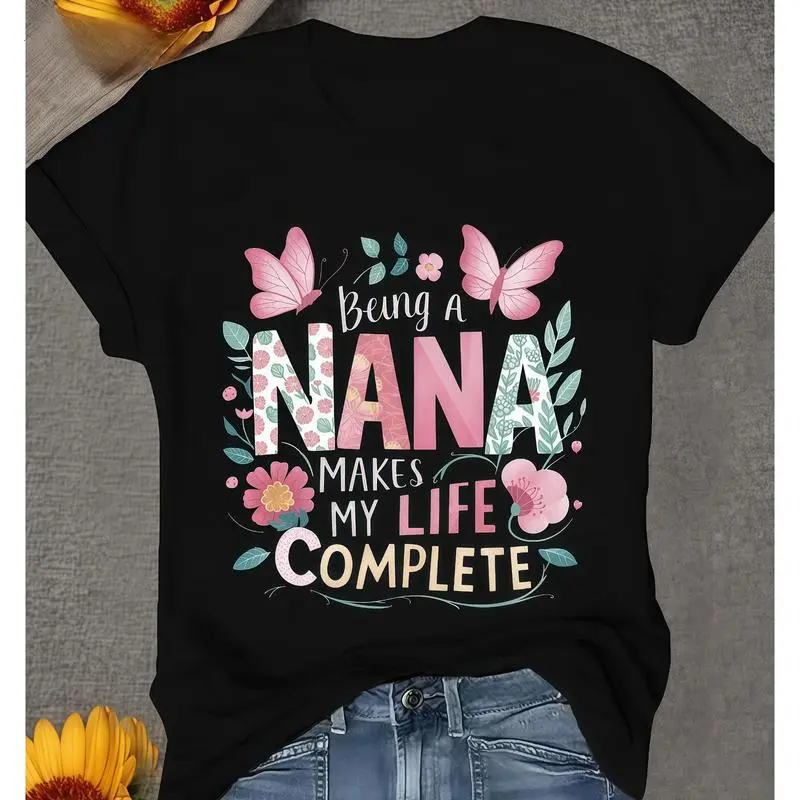 5. Grandmother Appreciation T-shirt Featuring a Tender Quote About the Joy of Being a Nana with Delicate Floral and Butterfly Accents Prints Soft