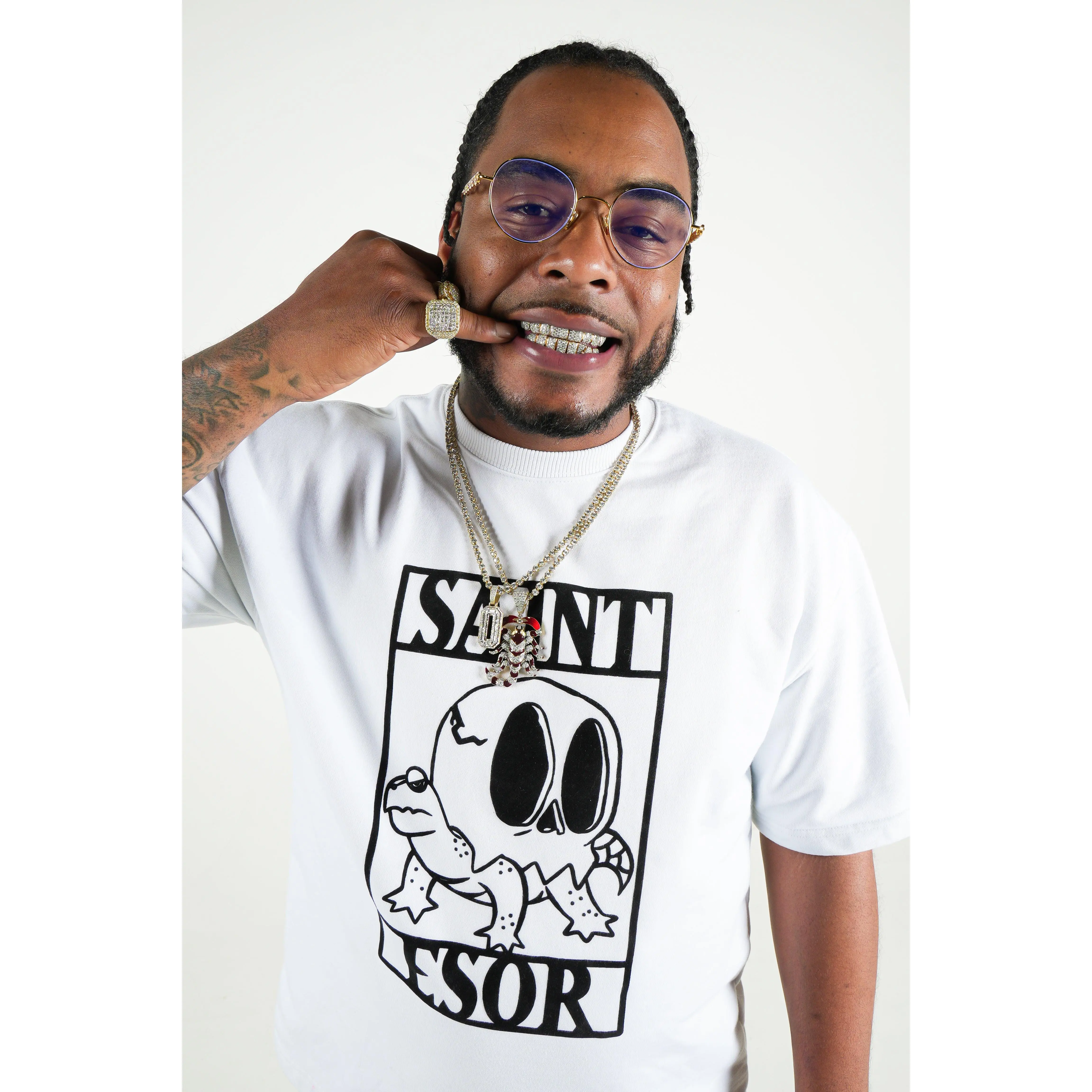 The front features the Saint Esor tortoise—steady, grounded, and protected—framed in a bold, structured graphic that reflects control and intention. The flock print gives it a velvet-like texture, adding depth you can both see and feel. It’s subtle, but elevated—never loud, always present.