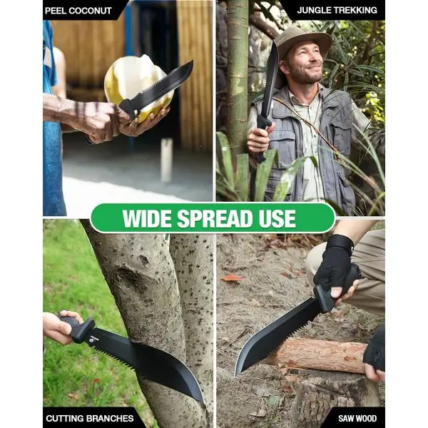 ·Excellent Outdoor Tool: Ideal for jungle exploration, camping, and hunting. The sharp blade and sturdy build let you clear brush, cut ropes, and harvest fruit effortlessly. The striking head at the handle's base adds extra functionality, making it a must-have for outdoor enthusiasts.