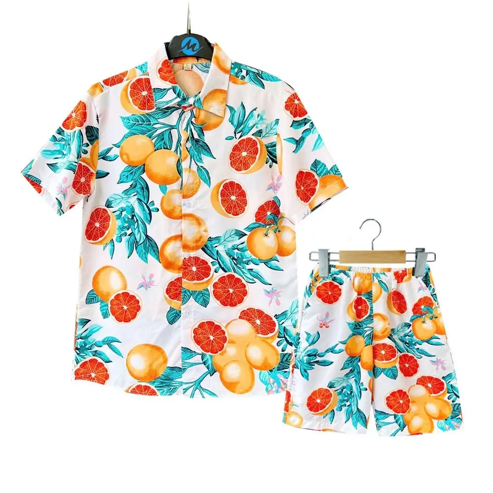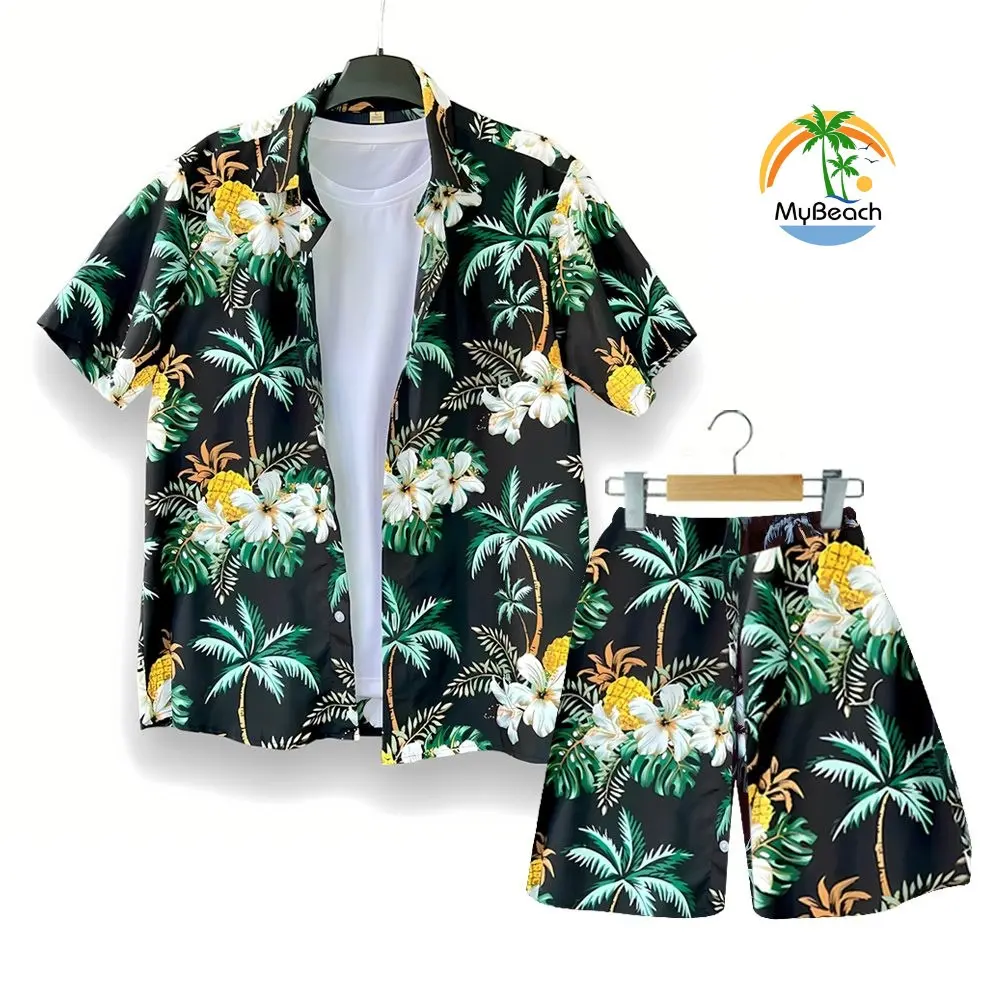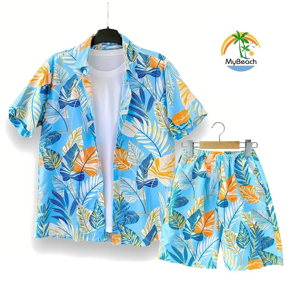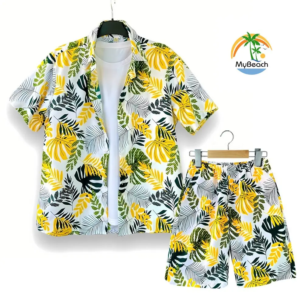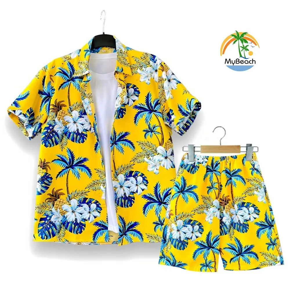 This set is your go-to for summer. The tropical print adds a fun, vibrant touch. Ideal for beach trips, it combines style with functionality. Enjoy your summer days in this fashionable and practical outfit. Stay cool and stylish with this Hawaiian-inspired set.
