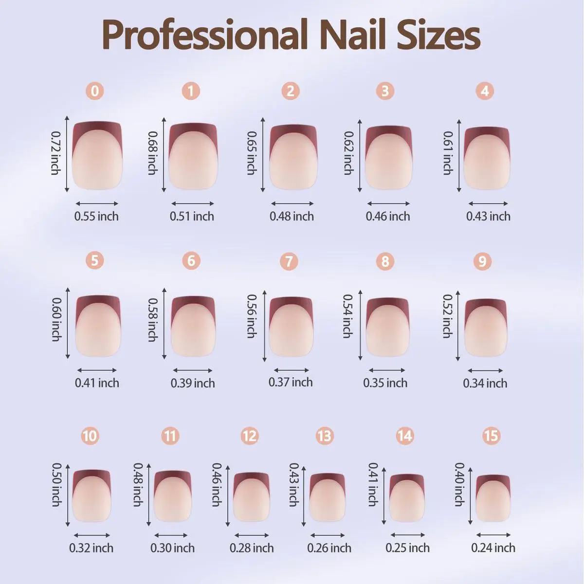 【15 DIFFERENT SIZE SELECTION】These square press on nails contains 15 different sizes of nail pieces, 150 pieces in total. You can find the nail size that suits you more quickly through the professional nail size database, ensuring fake nail tips a comfortable and secure wear.