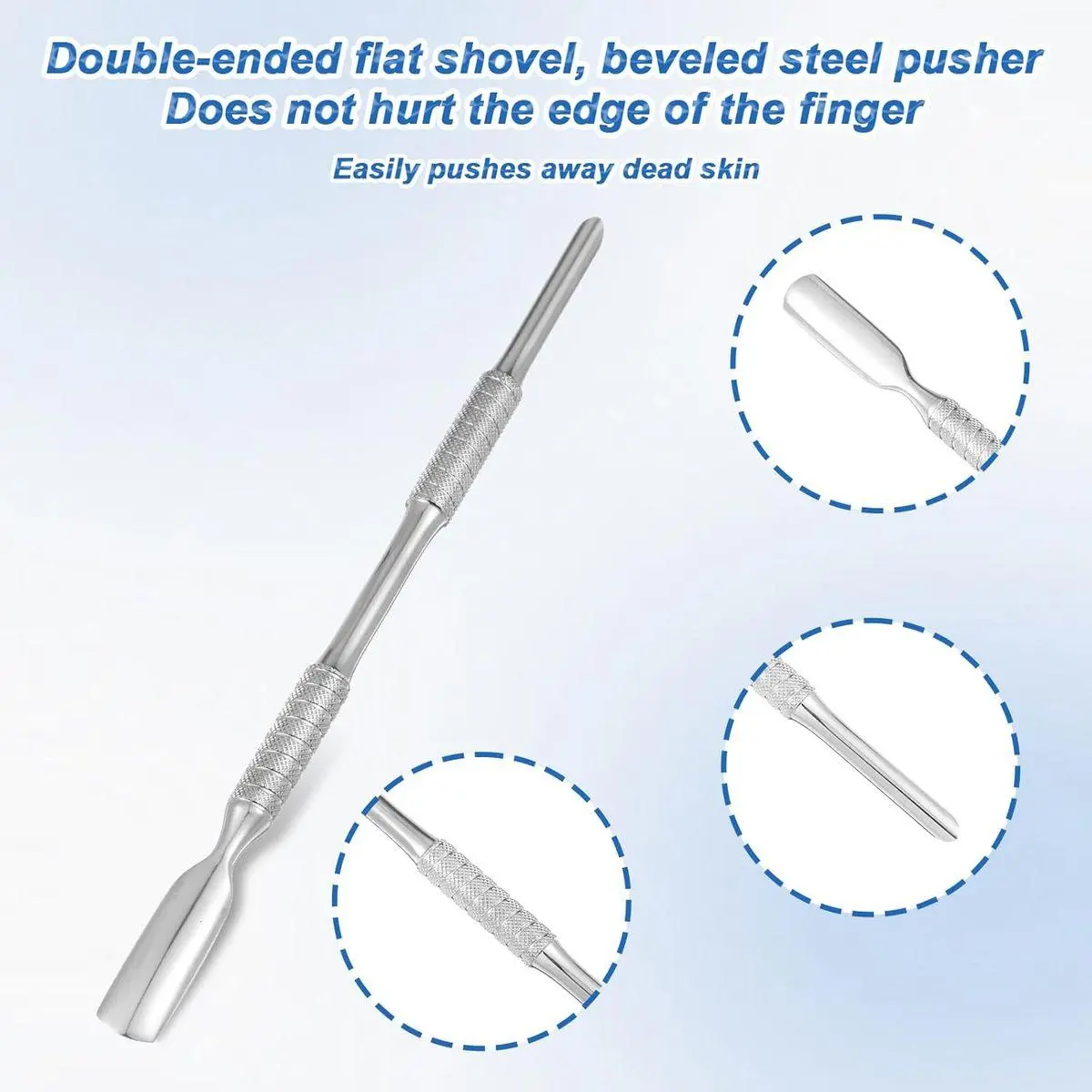 Double-Headed Design: This nail care tool has a double-ended design. The slanted end is ideal for trimming and removing excess natural nail cuticles, while the pointed end can be used to clean up spilled nail polish or nail art pens.