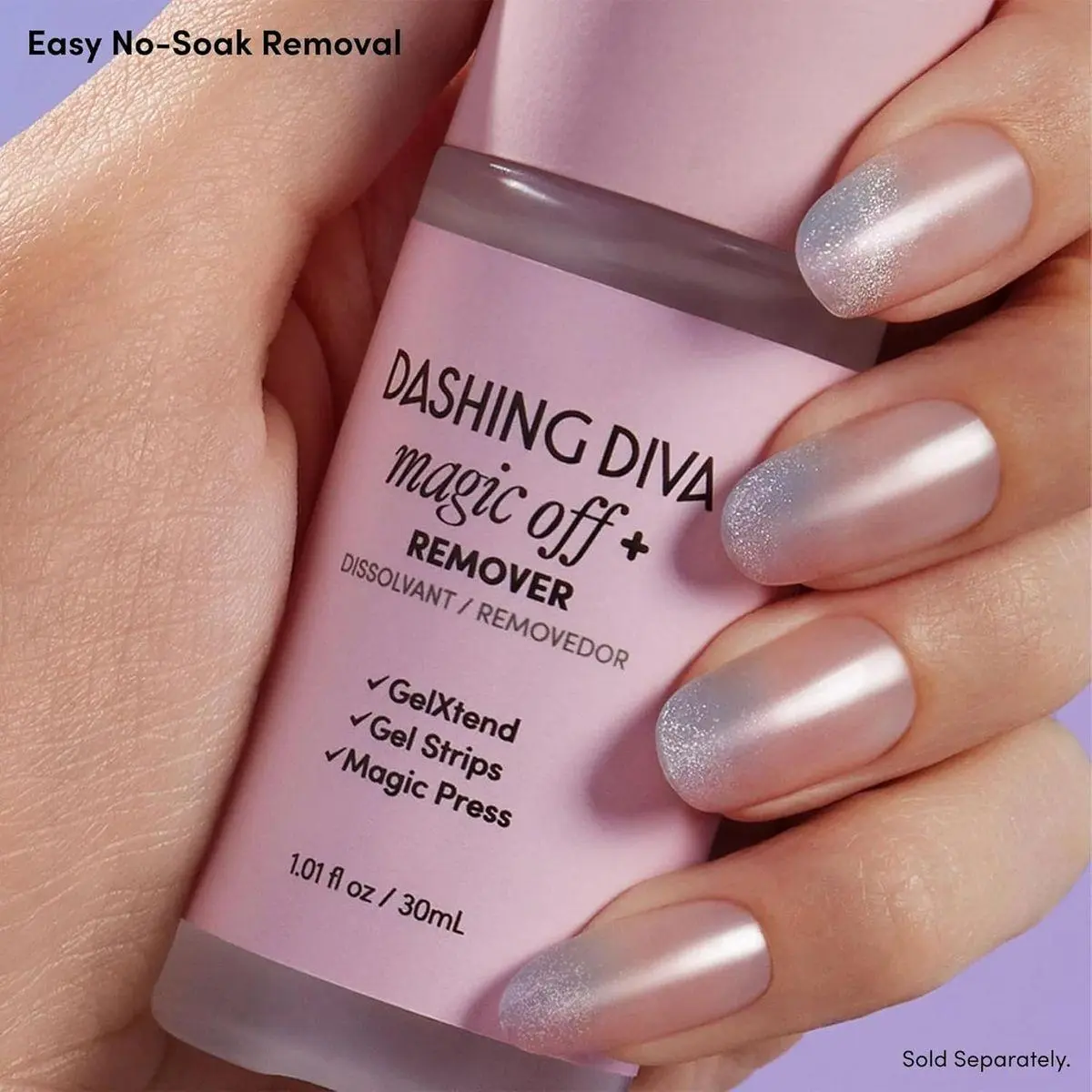 How To Use: Wash hands, shape nails with file, push back cuticles, clean nails from oils using included prep pad, select size of your strip, place and press strip to nail, fold the excess over, and file it off! Instant glossy, gel nails with non-damaging removal using Dashing Diva Magic Off+ Remover (sold separately)