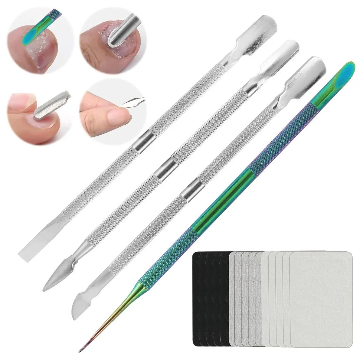 Dual-Ended Precision for Flawless Cuticles: This stainless steel tool features a spoon-shaped end for gentle cuticle pushing and a beveled edge to remove stubborn dead skin. The ergonomic design ensures control during Russian manicures, gel polish prep, or toenail care. Includes 100/180/240 grit sandpaper sheets for filing nails, cleaning polish residue, or smoothing edges