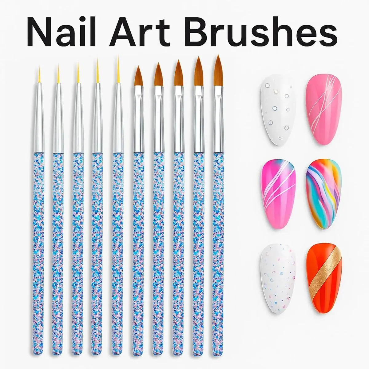 Ergonomic & Durable Design – Features glitter, matte, and metal handles for a comfortable grip. Bristles stay firm and precise after repeated use and cleaning.