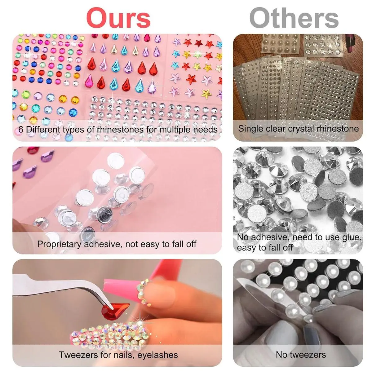Stand out from the Crowd: We provide you with 6 different types of 2609 hair rhinestones, including coloured teardrop hair gems, coloured star hair gems, full-colour crystal hair gems, clear crystal hair gems, pearl hair gems, glitter letters rhinestones stickers, which are more sparkling than the rhinestones of the toys.You can match your outfit and different theme party to create eye-catching hair styles that will make you stand out from the crowd. Everywhere you go is the focus.