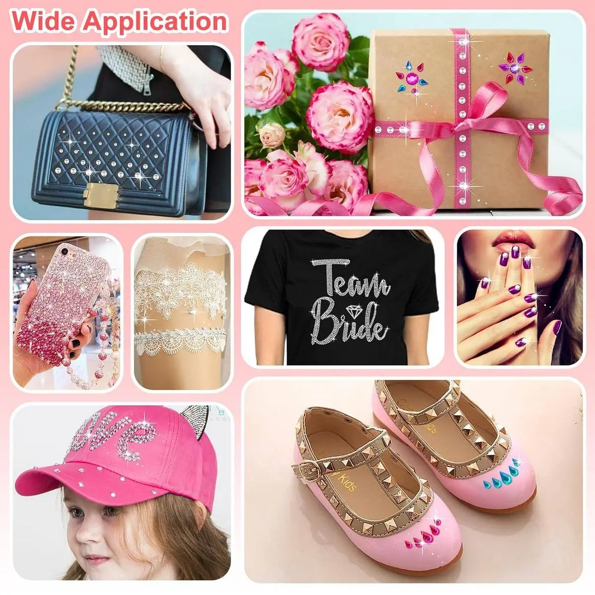 Wide Application: Self-adhesive rhinestones can be used not only for hair decoration, but also for stanley cups ,scrapbooking, mobile phone cases, bags, shoes, crafts, photo frames, card making, mailboxes, gift box packaging, home decorations and so on. They can also be attached to face, eyes, nail art, make-up, clothes. Especially suitable for music festival rave costumes, Halloween hairstyles, theme party dress up, costumes or weddings, be the most eye-catching one.