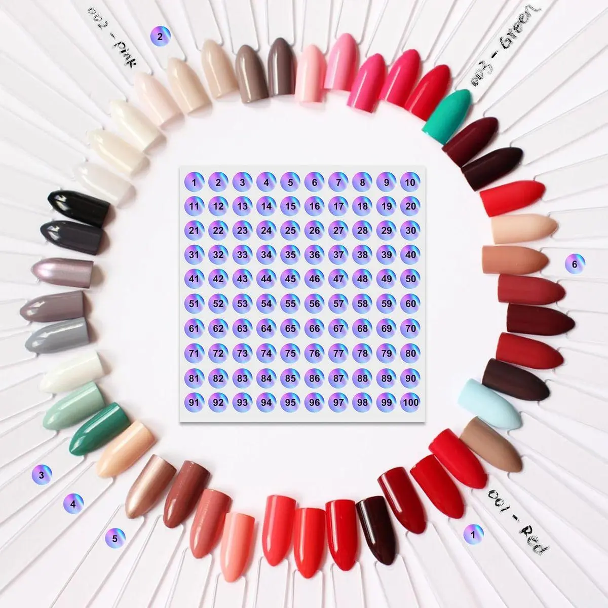 Organized & Convenient: Includes 2 sets of numbered stickers (1-100) for effortless color identification and tracking. Each swatch stick is mounted on a sturdy ring, allowing you to easily organize and access your colors without the hassle of opening multiple bottles.