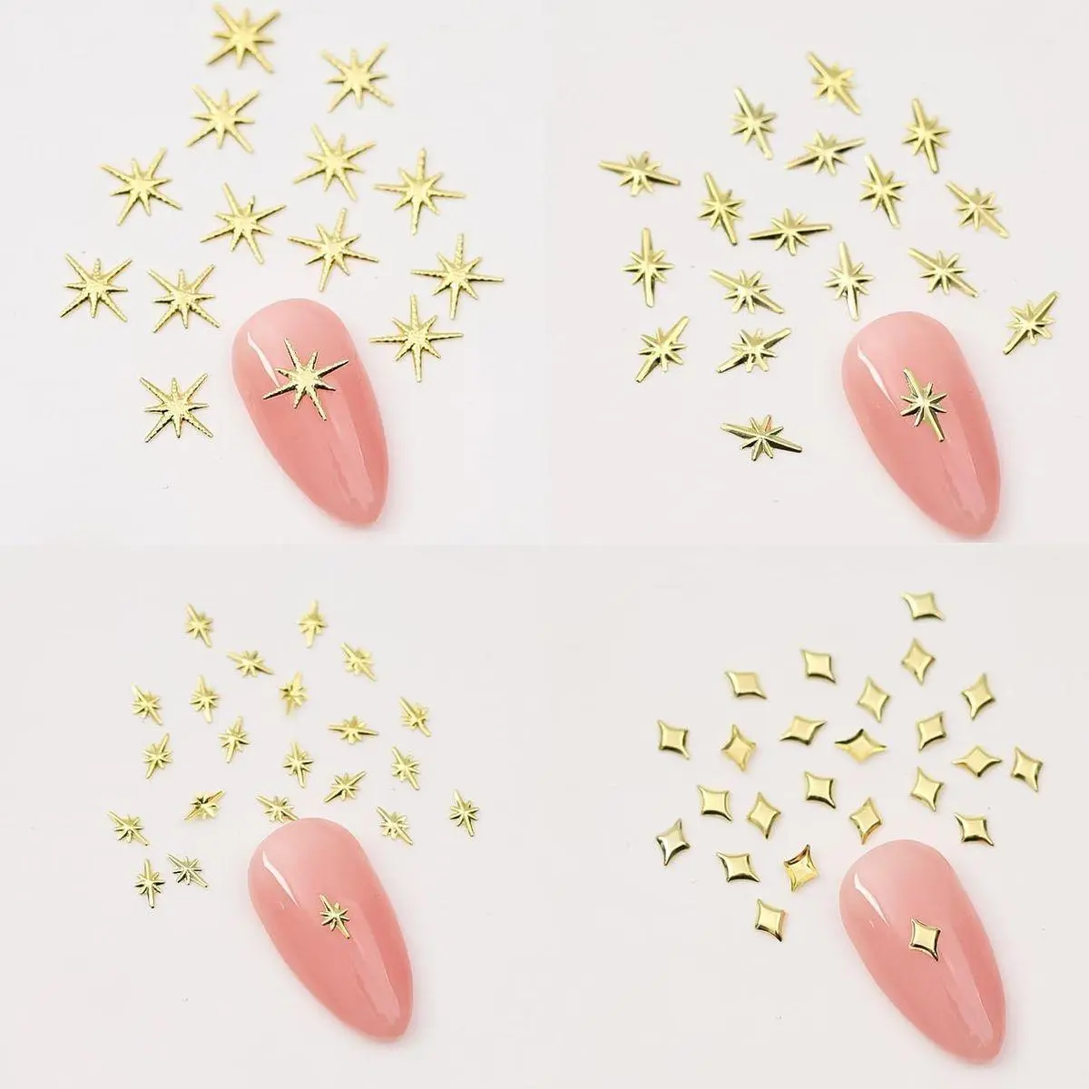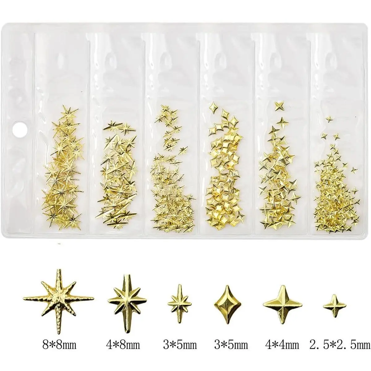 Gold Theme Design: Featuring an eye-catching combination of gold and silver, these 3D star nail charms provide a shiny and adorable accent to your nail designs. Elevate your manicure with these stunning charms that add a touch of glamour