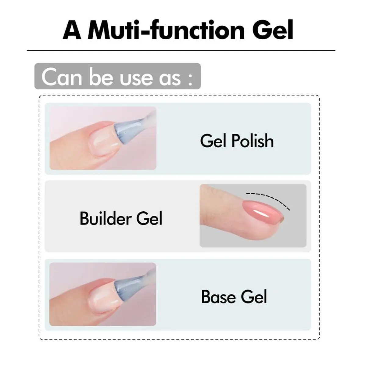 Easy Application: It needs to be cured under an LED or UV lamp for a durable. Whether used as gel polish or builder gel, it is very easy to use without complex techniques or excessive filing.