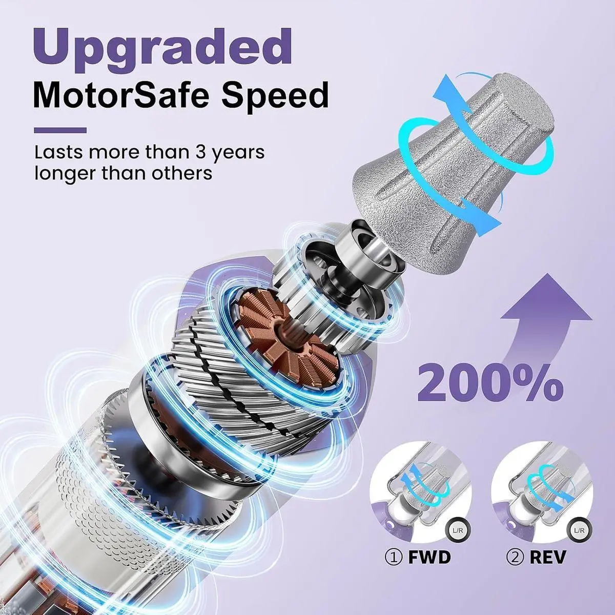 【Precision Speed Control & Dual Rotation】 This pedicure kit features 10 adjustable speeds (6000-10,000 RPM) and dual-direction rotation for versatile nail care. Handles thick toenails and delicate cuticles with clinical precision. Vibration-free operation ensures comfort for all skin types.